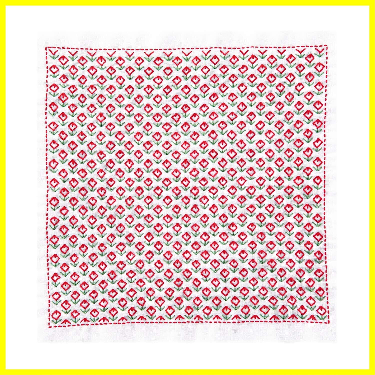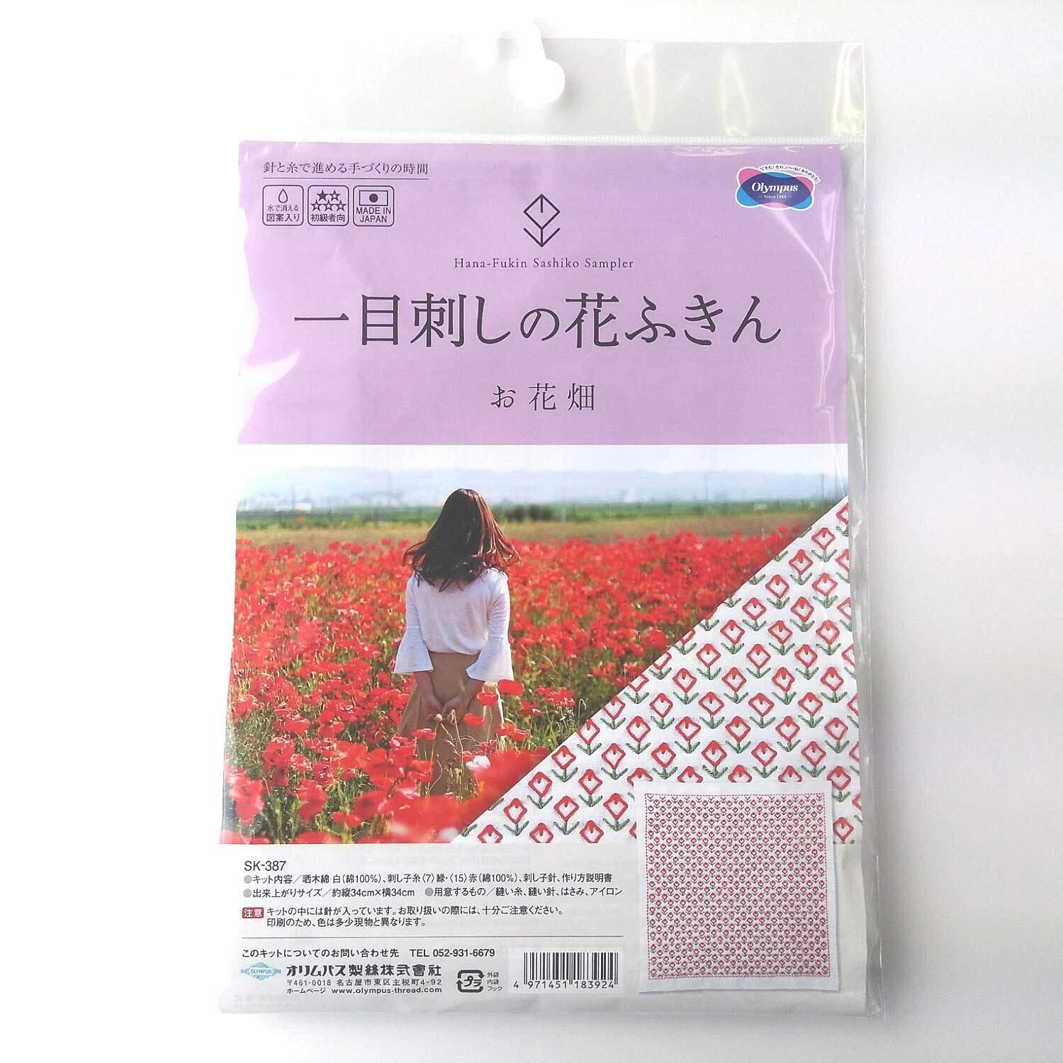 オリンパス 一目刺しの花ふきん 刺し子キット お花畑 約横34cm×縦34cm OLY-SK-387