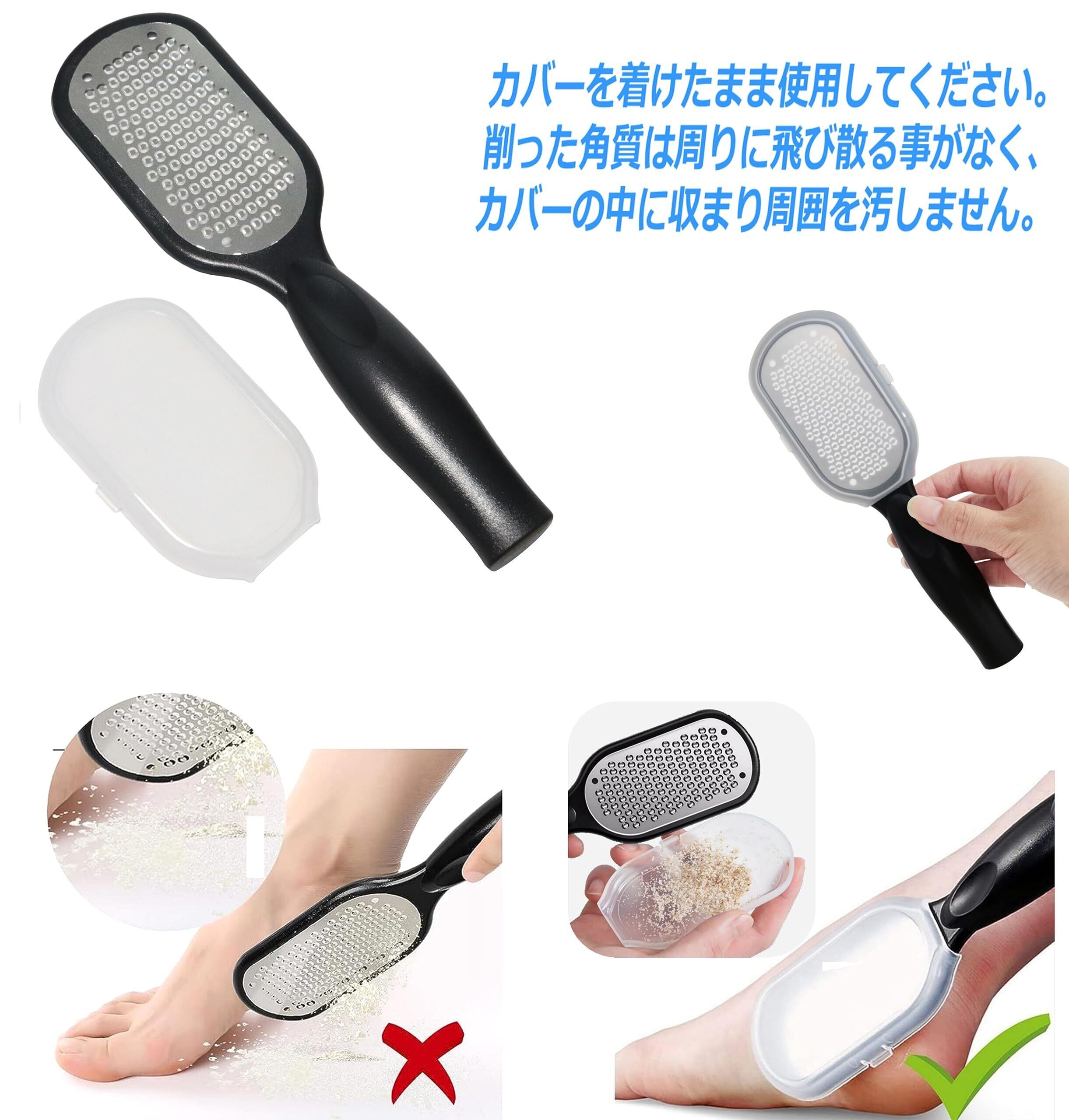 かかと 角質取り フットケア ステンレス製 足 角質リムーバー やすり 丸洗い可能 カバー付き マイクロ カッター 削り ブラシ (BLACK)