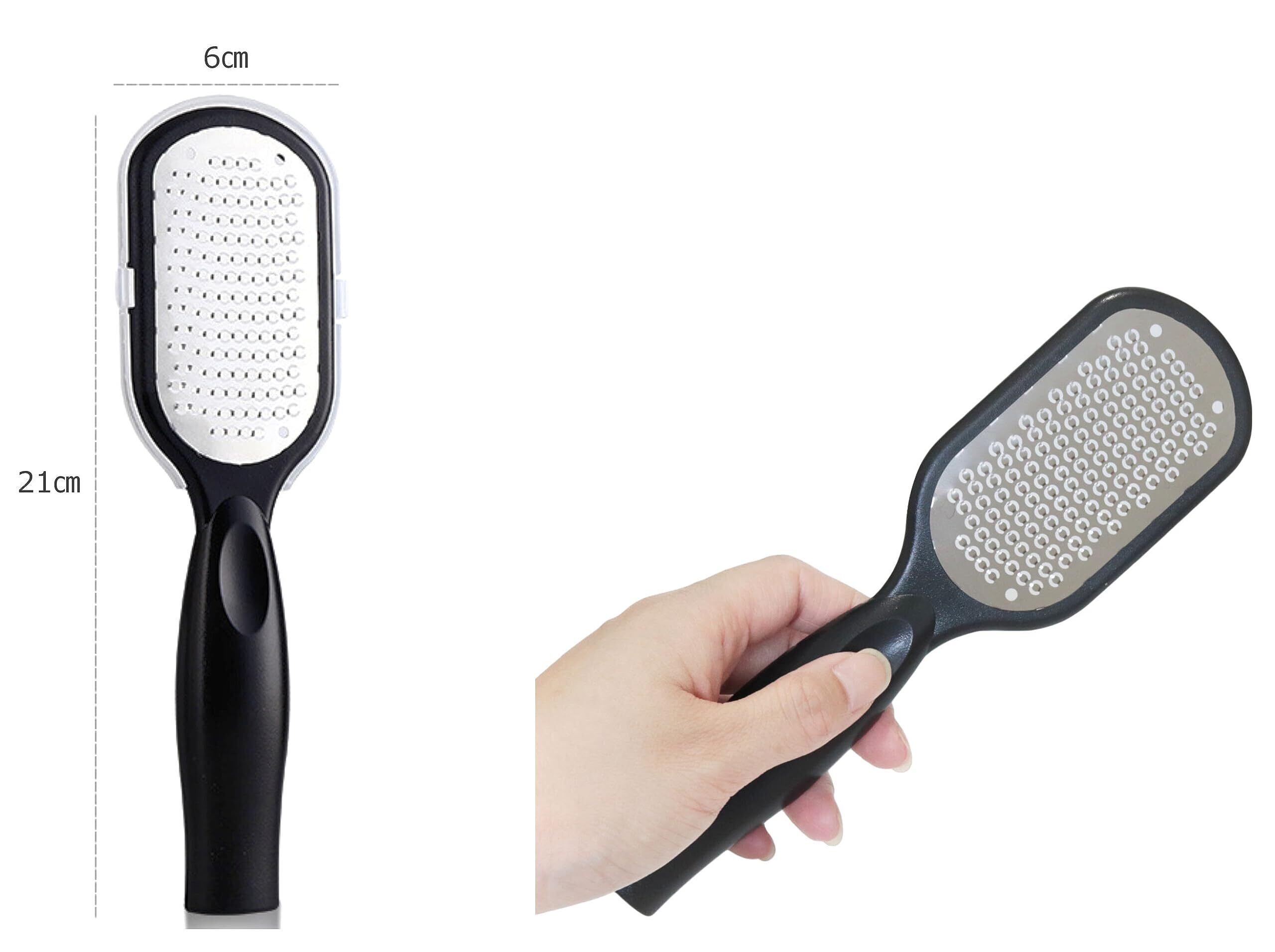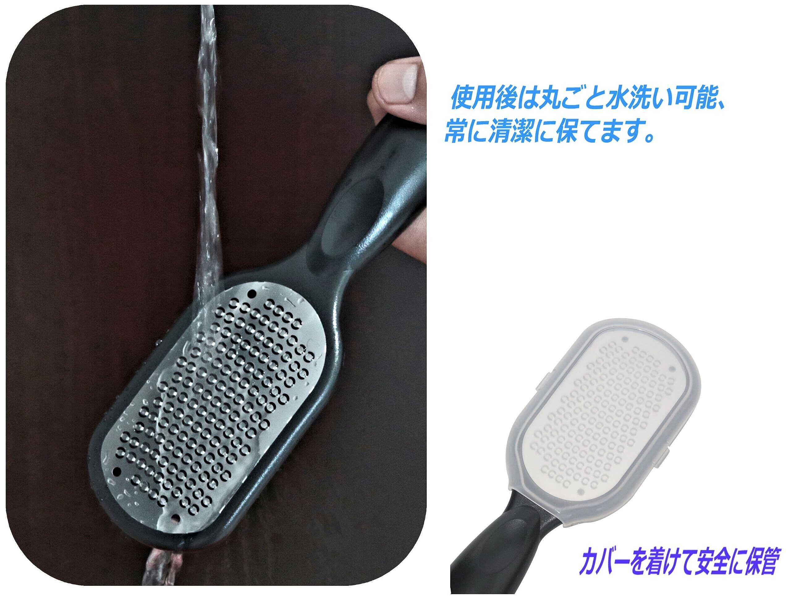 使用方法:かかとや角質が硬くなった部分に当てて削ります。一方向に動かすとポロポロと角質が落ちてきます。力を入れすぎないように注意してください。使用後は水で洗い、乾燥させてください。