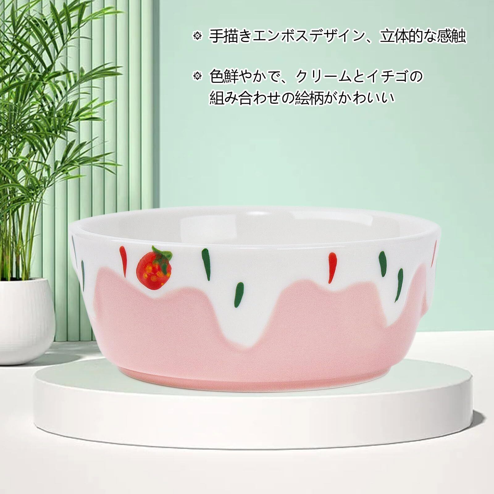 【かわいい柄のボウル】フレッシュな配色とアイスクリームケーキの絵柄の組み合わせが見た目の可愛さを際立たせています!陶器製なので、しっかり安定するので、やんちゃなお友達でも安心!