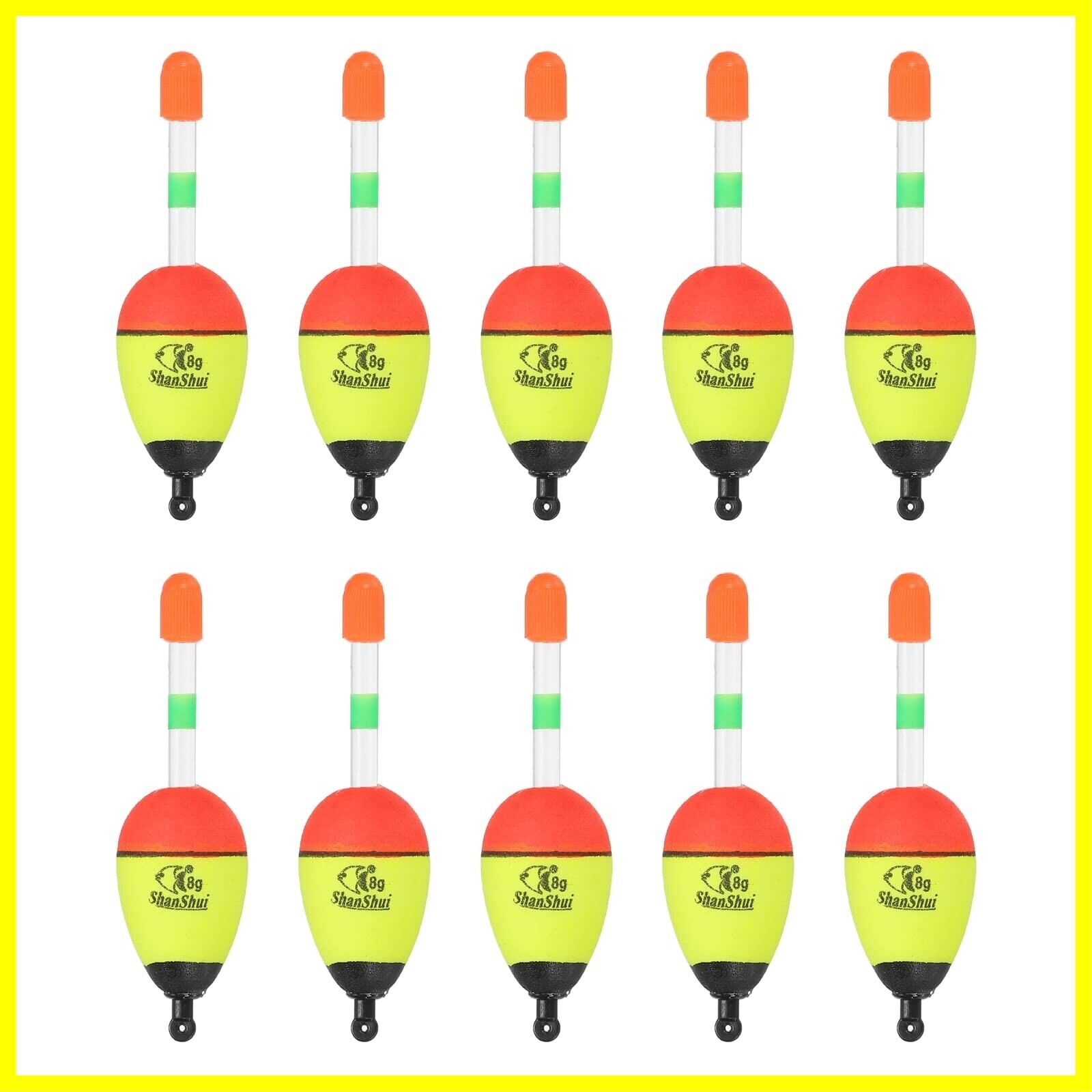 サイズ: 浮力: 8g / 0.3オンス; 直径:25 mm; 全体の長さ:91 mm; パッキングリスト: 10 x フィッシングスリップボバー