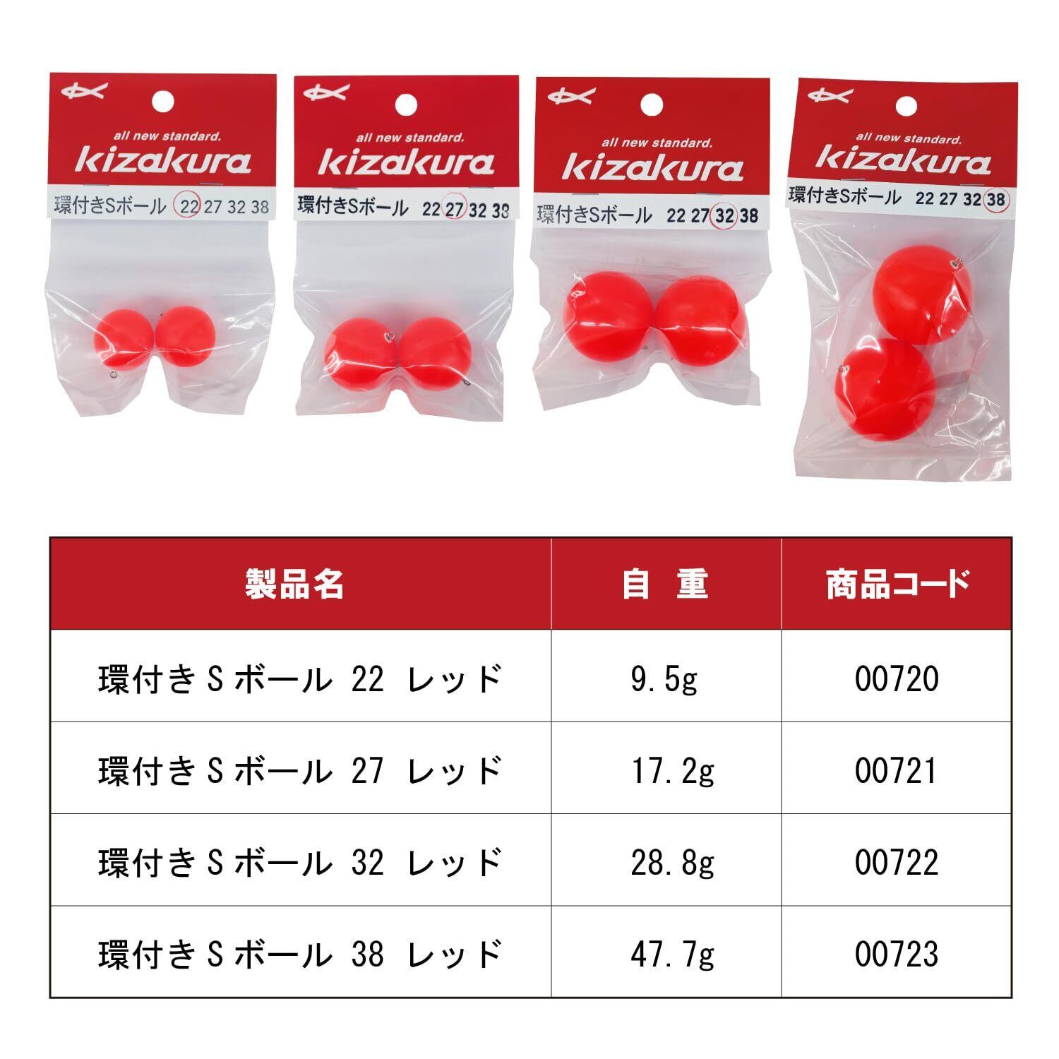 キザクラ(Kizakura)環付きSボール 27 レッド(2個入)