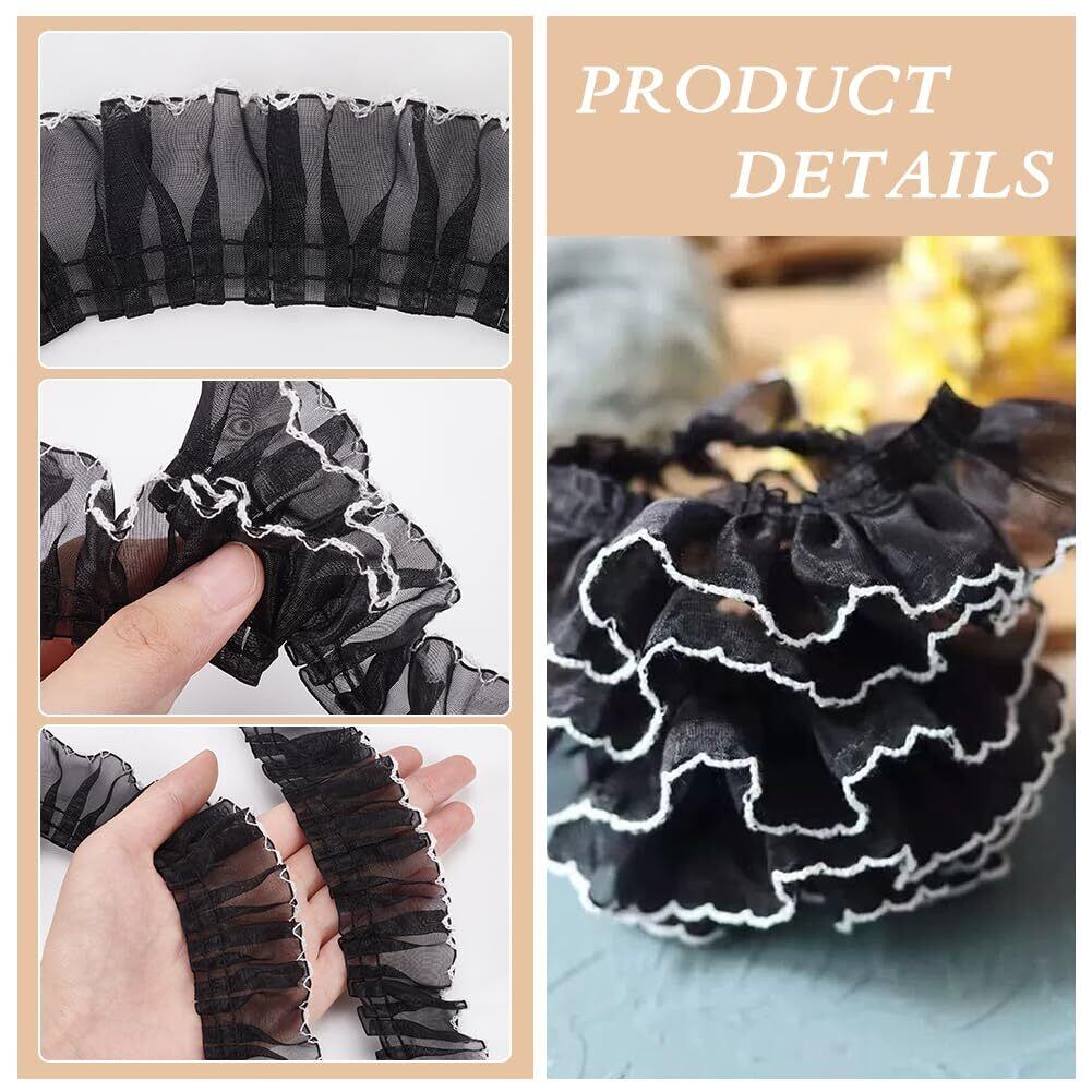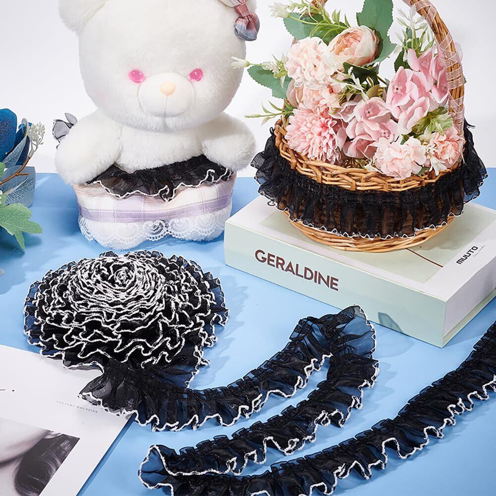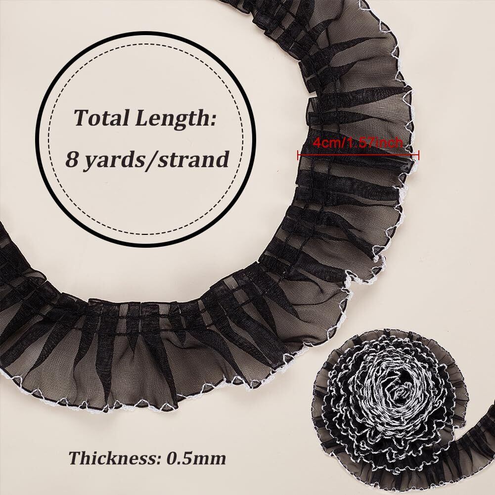 BENECREAT 約7.3m/8ヤード レーストリム ブラック&ホワイトパイピング 幅40mm 波形レーストリム フリルレースリボン ポリエステルプリーツレーストリム 飾りレース DIY服 カーテン用 工芸品 手作り 結婚式 素材