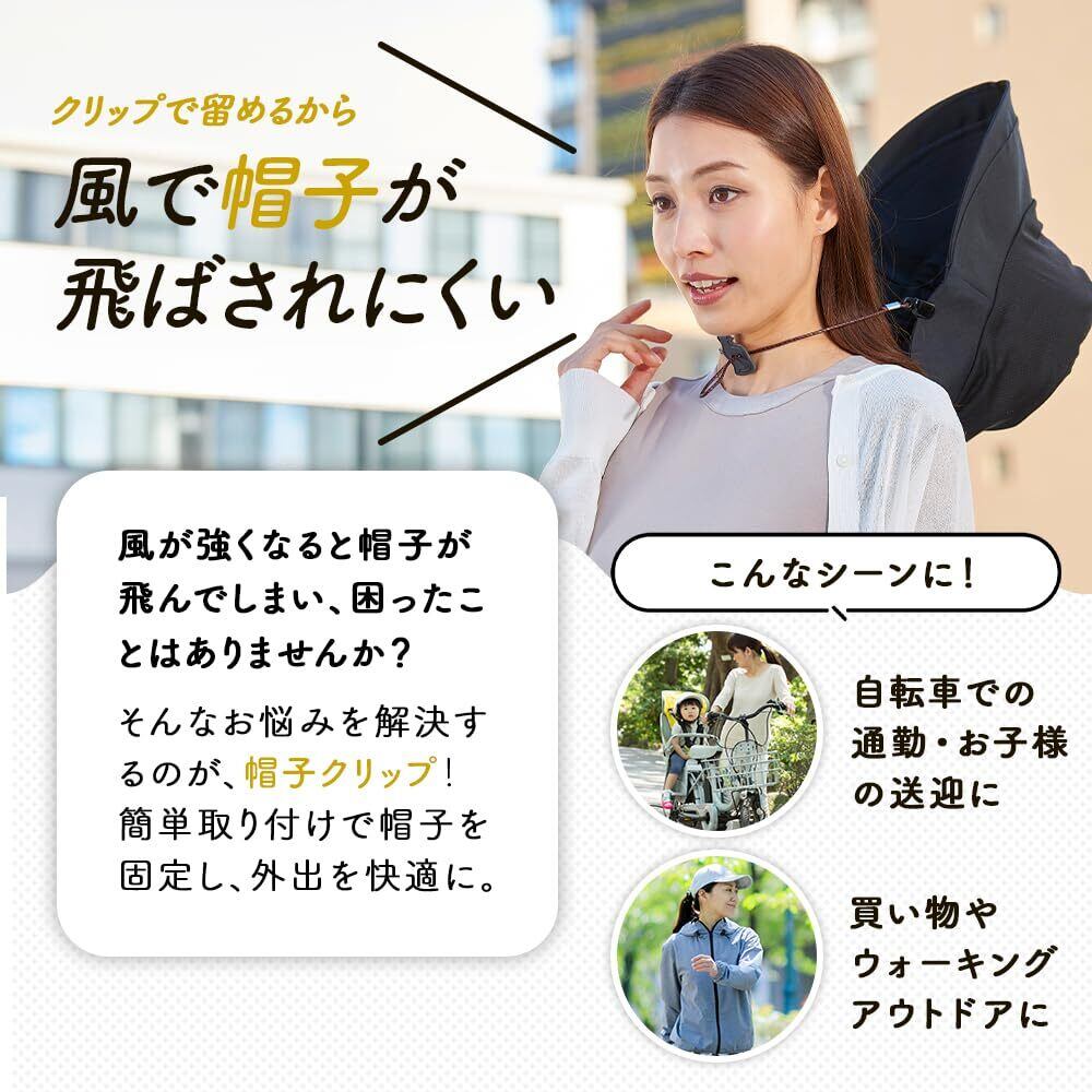 【自分の使いやすい取り付けスタイルで】●帽子のツバに:クリップをツバの外側に取り付けてカジュアルに。●帽子のビンカワに:帽子のビンカワに取り付けてクリップを目立たせずに。※●帽子と洋服に:帽子と洋服に片方ずつ取り付けてスタイリッシュに。
