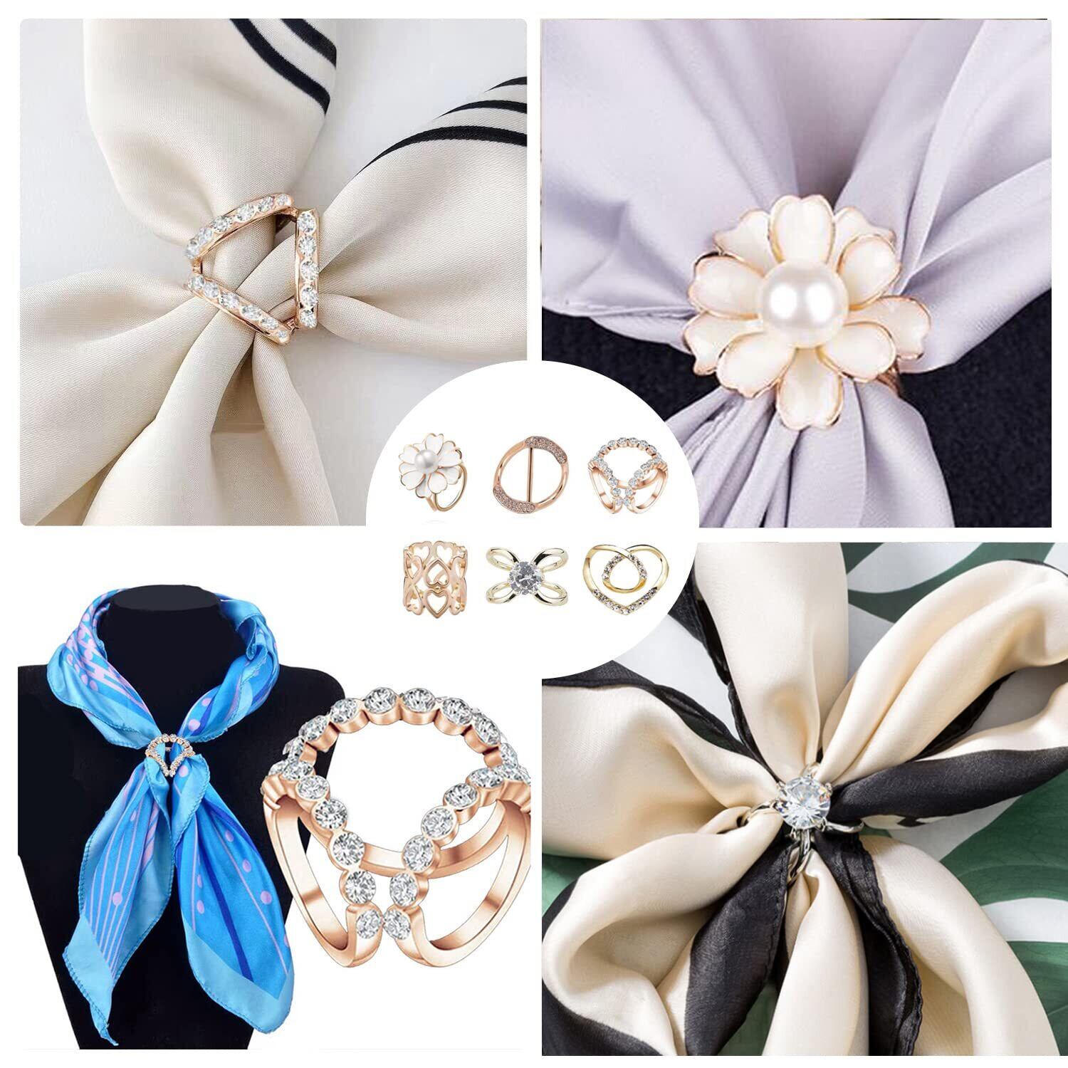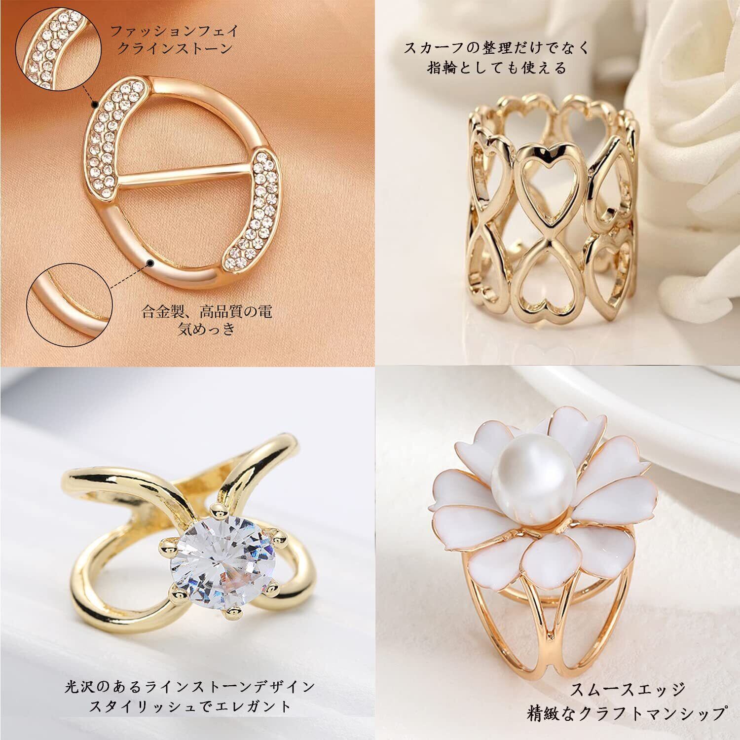 スカーフリング スカーフ留め 6種6個入 ラインストーン 女性 人気 スカーフ リング 滑らか 上品 シルク クリップ 結婚式 母の日 入学式 卒業式 誕生日 母へのプレゼント 金色 ゴールド