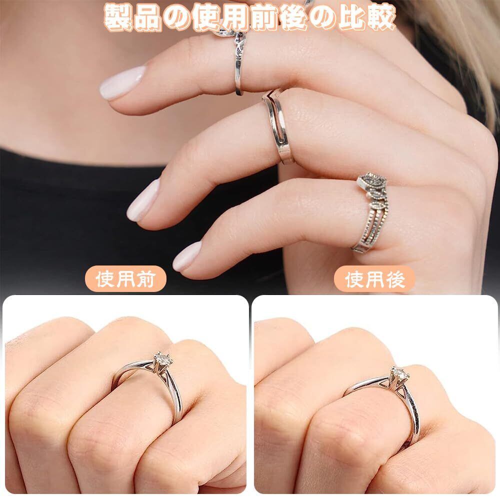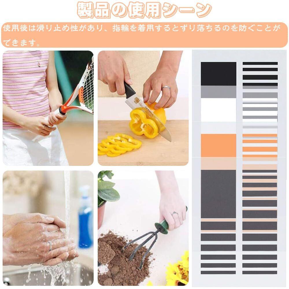 背面は粘着性が高く、脱落しにくい。 使用前に破り、リングの内側にしっかりと固定してください。 使用後は滑り止め効果があり、指輪の装着時の滑り止めになります。 指輪や指の美観を損なうことはなく、誰も指輪の調節器の存在に気づかない。 指輪を紛失から守ることもできます。