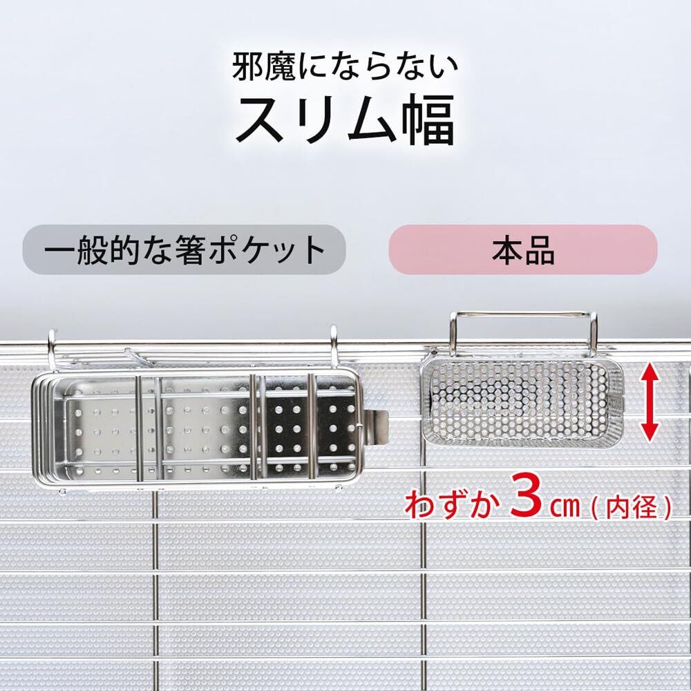 下村企販 箸 水切りポケット スリム 【日本製】 ステンレス パンチング 邪魔にならない 薄型 フック付き 水切りかご カトラリー しゃもじ 燕三条 45698