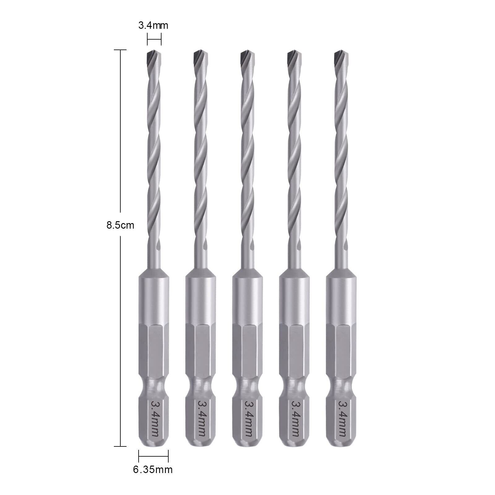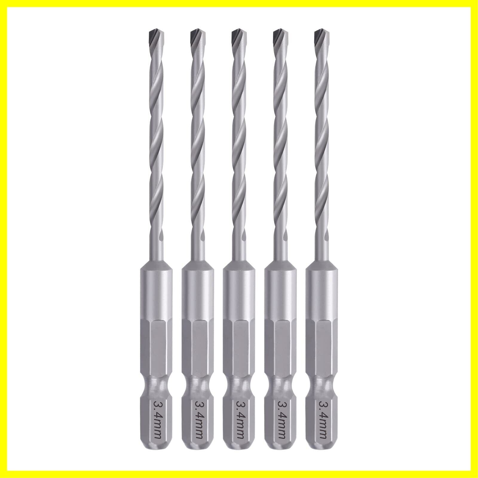 【商品仕様】セット内容:コンクリートドリル5本セット。サイズ:3.4mm。軸径:6.35mm六角軸。材質:超硬特殊鋼。