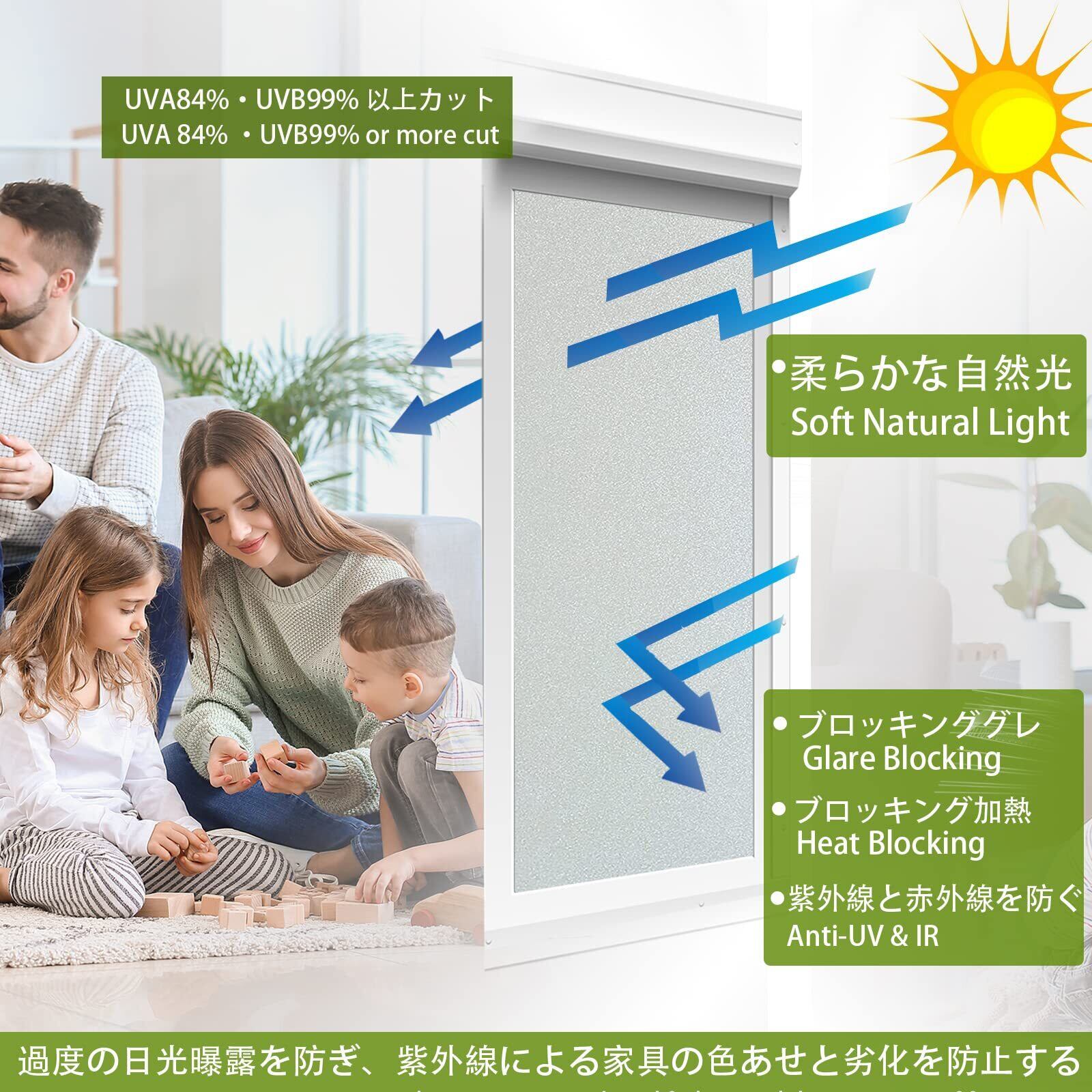 【窓 フィルム--プライバシー保護】この窓 フィルム 断熱、 ウィンドウプライバシーフィルムは、充分な天然の日光を室内に取り込めて明るさを維持しながら、手軽にプライバシーの保護、ができます。窓ガラス フィルム 目隠し 15cm以上離れていれば、天気や昼夜を問わず、室内が見えにくいです。プライバシー保護の効果は98%以上に達します。防水機能付きますので、浴室、キッチンなどの滑らかなガラス表面にも適用です。ガラス フィルムは子供、ペット、家族に平和でリラックスできるスペースを提供します。