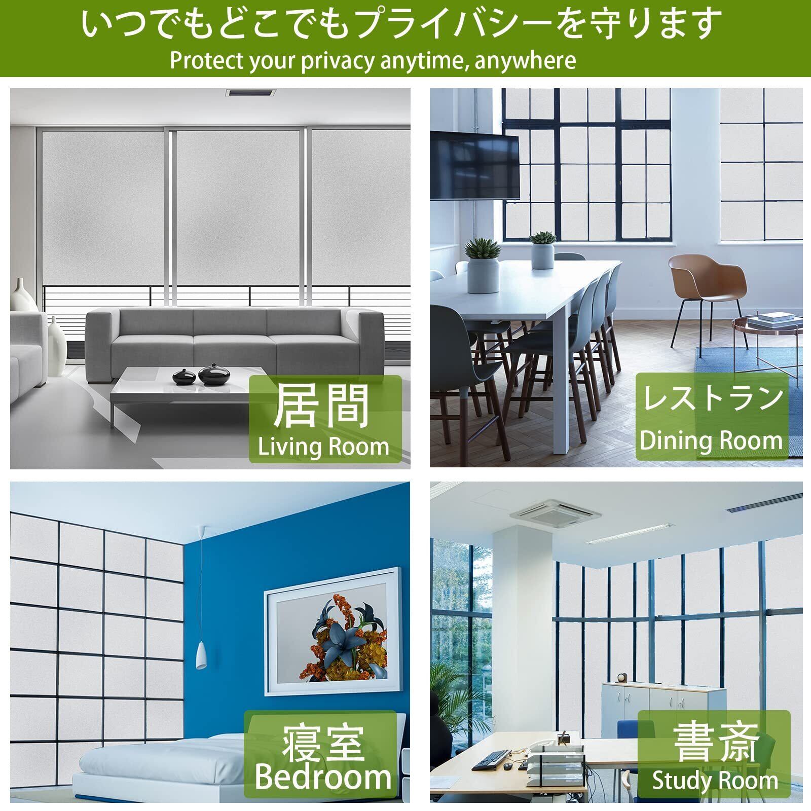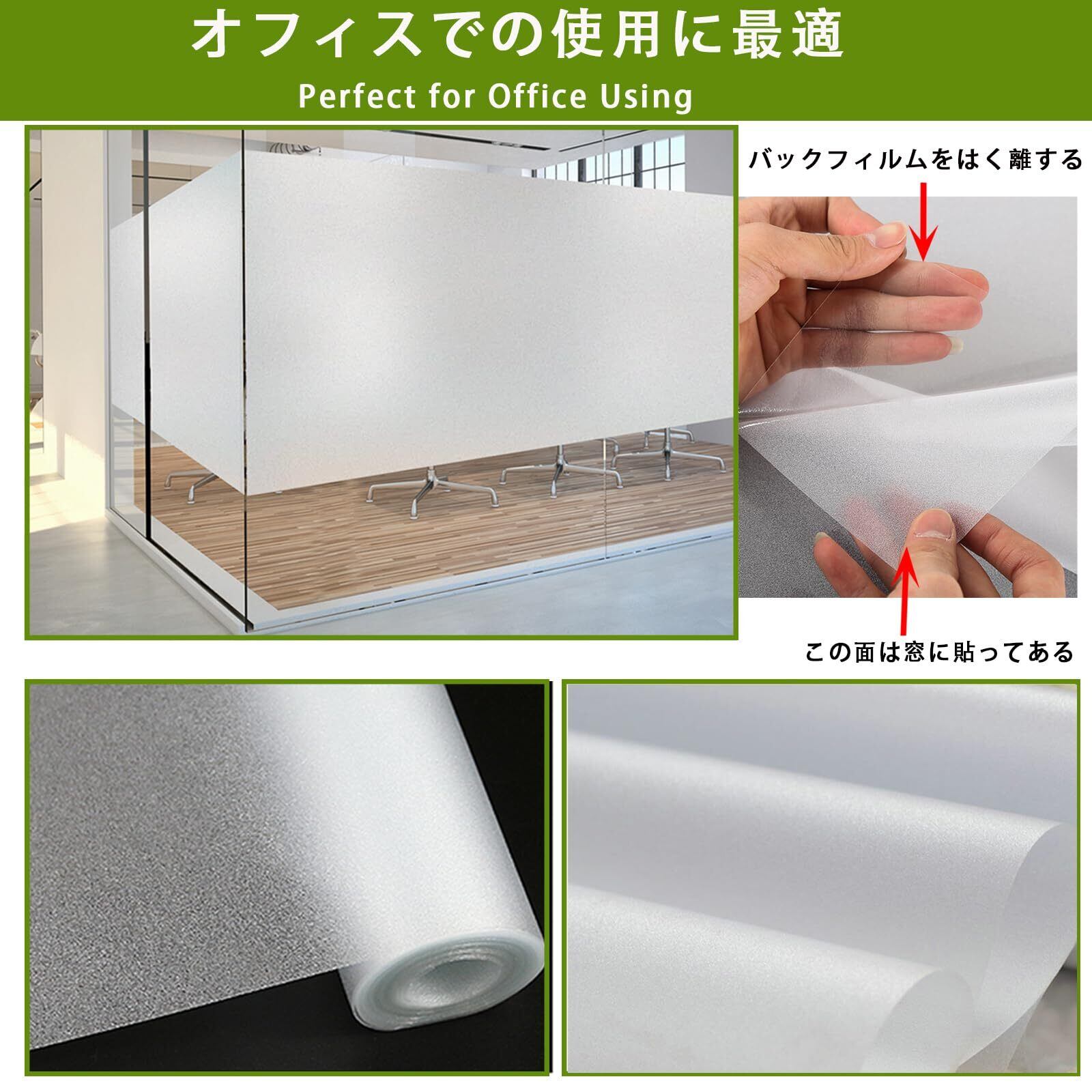 【窓フィルム--水だけで貼り、貼りやすくて繰り返し使用可能】この曇りガラスシート 接着剤不要(静電気吸着)なので、水だけで貼り付け、貼り直しOK!しかも何度でも貼ってはがせる再利用可能、長年にわたって、使用できるエコアイテムです。初心者でもきれいに貼れます。接着剤・糊やテープを使わずに静電気の力で吸着するので、手で簡単にはがせ、剥がした時「跡」が残りません。【ご注意】●必ずガラスフィルムについた保護フィルム(不要なフィルム)を剥してください。この手順をスキップすると、貼ったガラスフィルムが剥がれ落ちてしまうので、ご注意くださいませ。●任意の滑らかな表面に適用できます。粗いまたは多孔性の表面には適用されません。