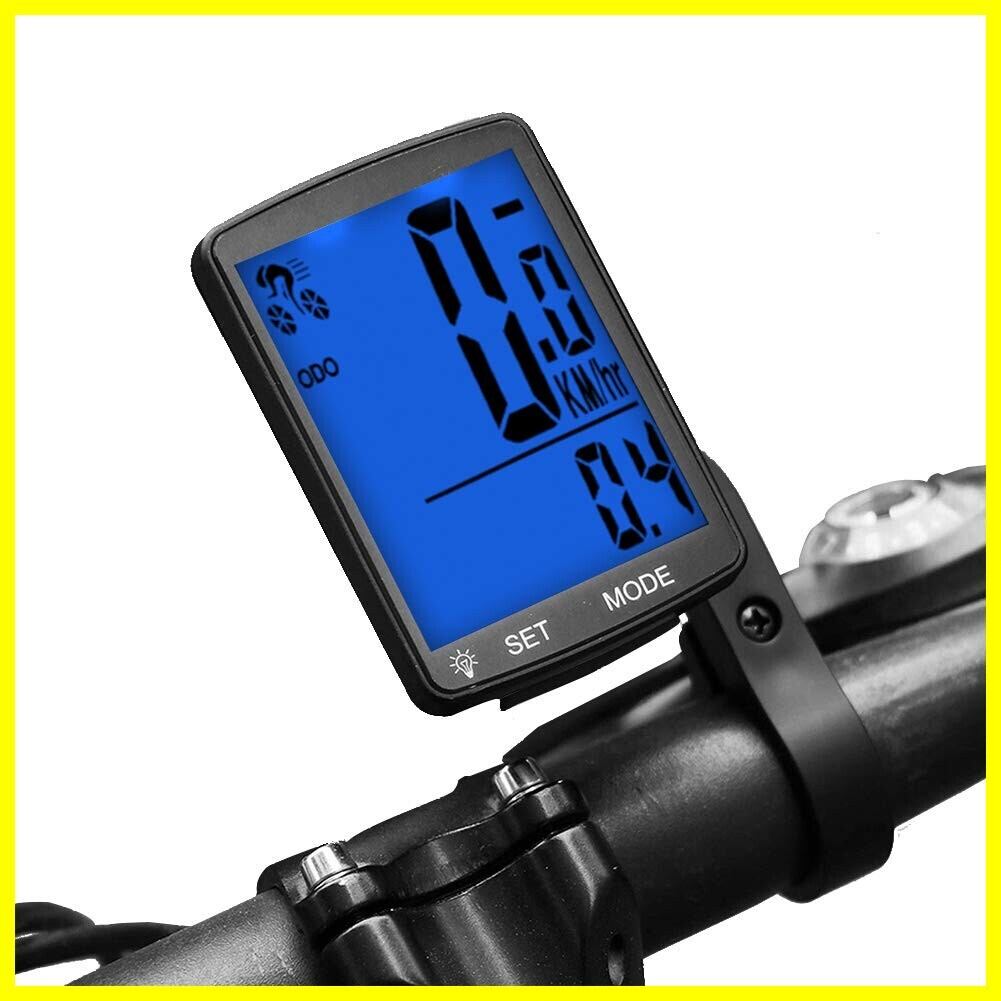 サイクルコンピューター 自転車 ワイヤレス サイコン スピードメーター 大画面表示 防水 バックライト付き 走行距離計 走行時間計 気温 消費カロリー 多機能 (ブルー)