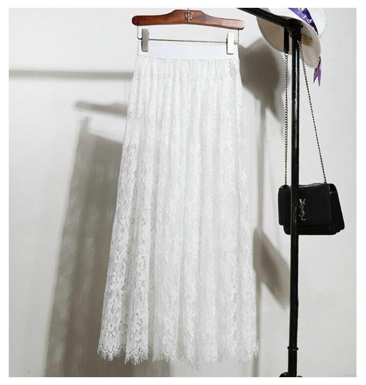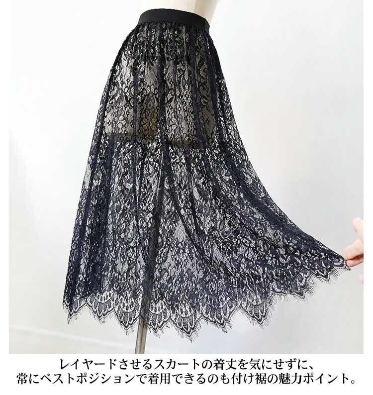 インナー スカート ロング レース ペチコート ペチスカート 75cm 丈増し スカート 総レース 重ね着 レイヤード ドレスインナー ゴムウエスト おしゃれ 体型カバー レディース ロングスカート マキシ丈 白 黒
