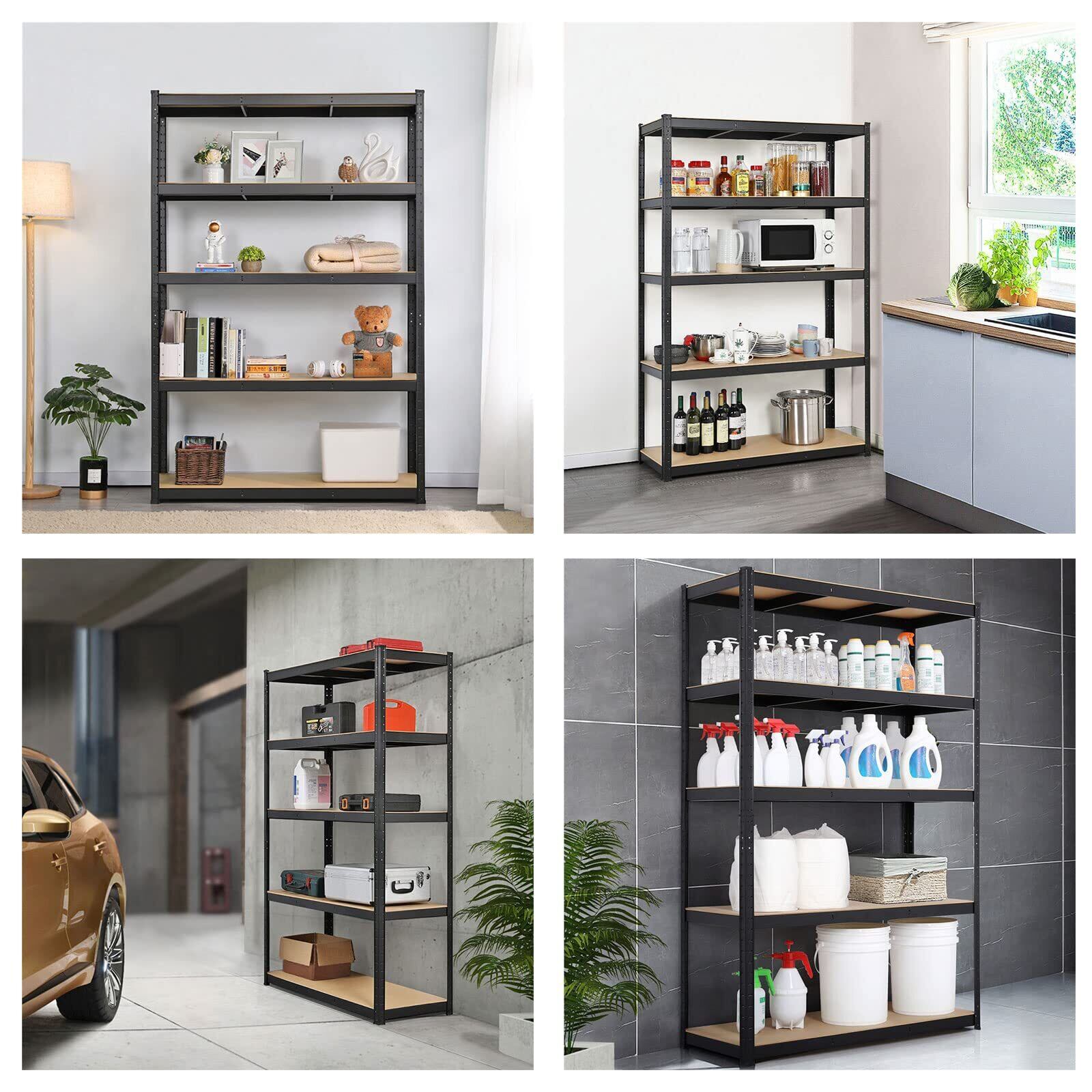 【多目的用途】五段の棚にはビニール製の脚が16あり、物置の収納棚に組み立てられますし、デスクとして平に置くこともできます。地下室、貯蔵室、作業室、お店、家庭、寝室、リビングルーム、キッチンなどに向いています。