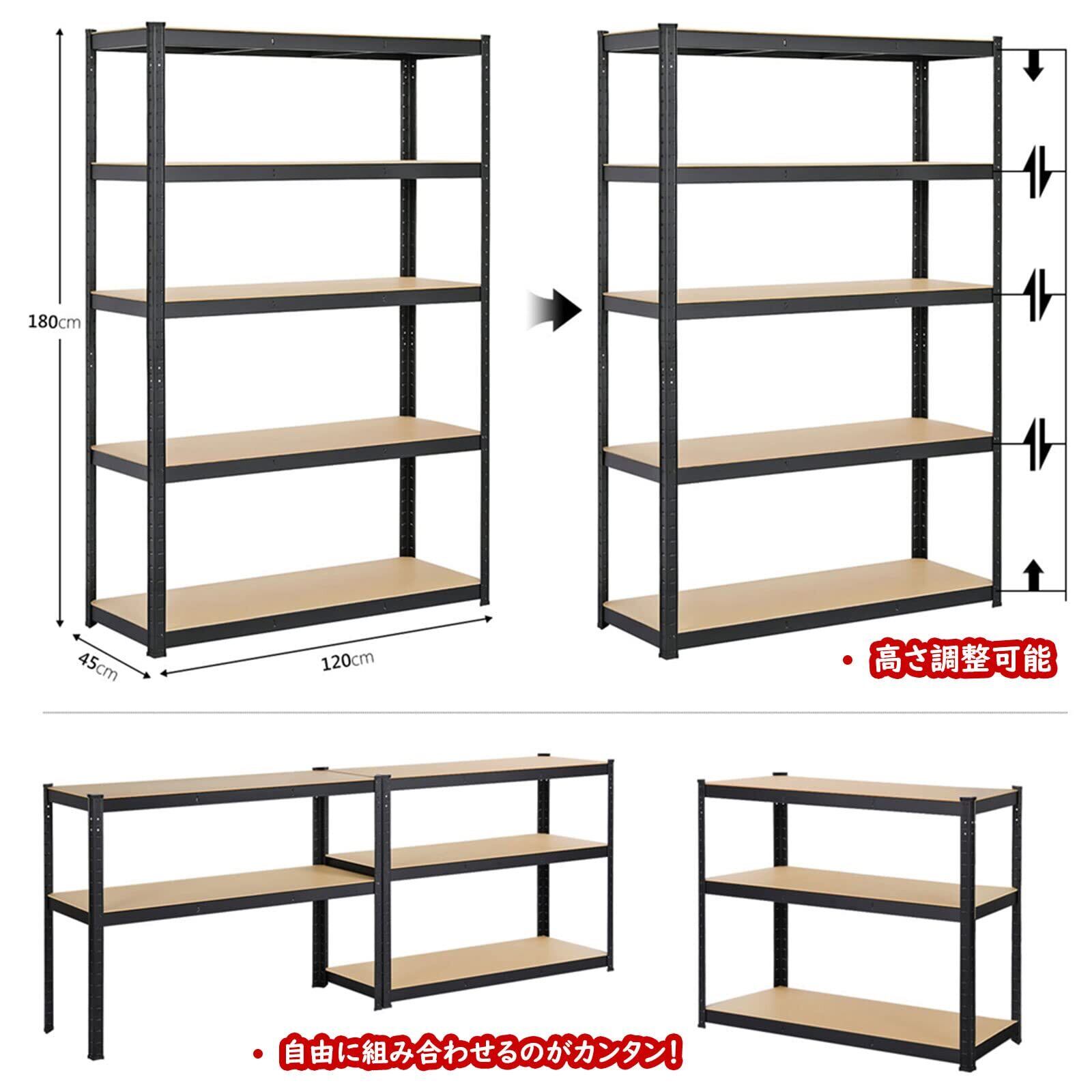 Yaheetech スチールラック本体 キッチンラック 5段 幅120 奥行き45 高さ180 メタルラック 収納棚 高さ調節可 ステンレスラック 収納ラック 防サビ加工 ネジなし 組立簡単 棚あたり耐荷重175kg キッチン 物置 倉庫 ガレージ 611410