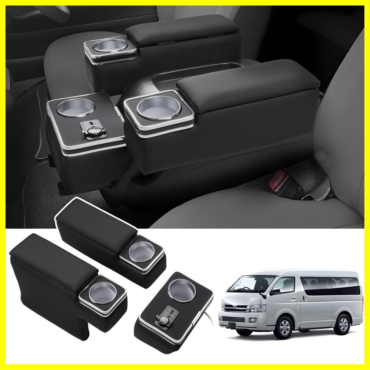 ハイエース200系 アームレスト コンソールボックス 肘置き ハイエース 肘掛け ハイエース200系パーツ ハイエース用パーツ ハイエース ジアスエース 200系 ハイエース200系パーツ 小物入れ 収納ボックス PU 落下防止 内装パーツ 2個セット H200系 ワイド 標準 1型~7型 GL・スーパーGL (2004.8~現行) 三個セット ブラック