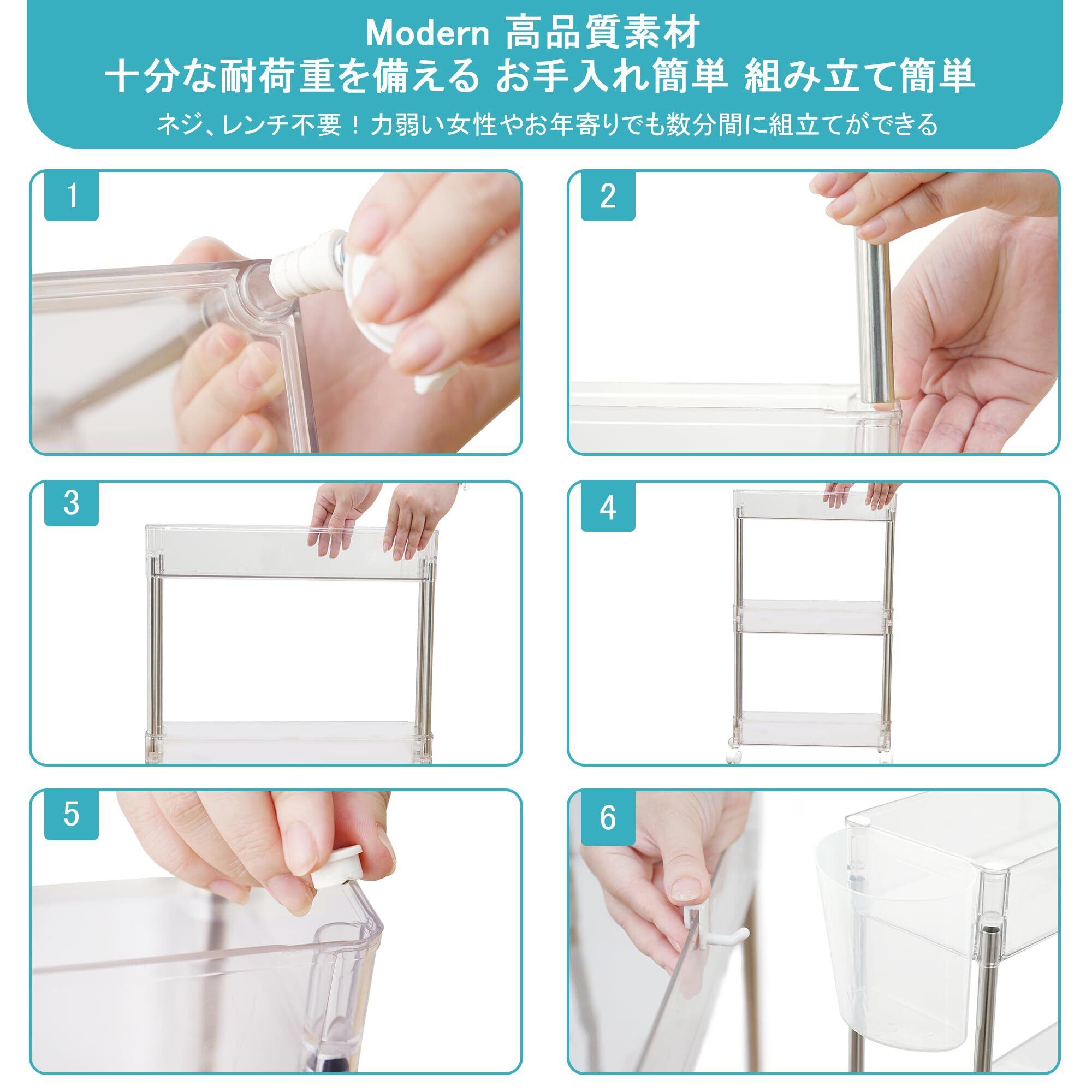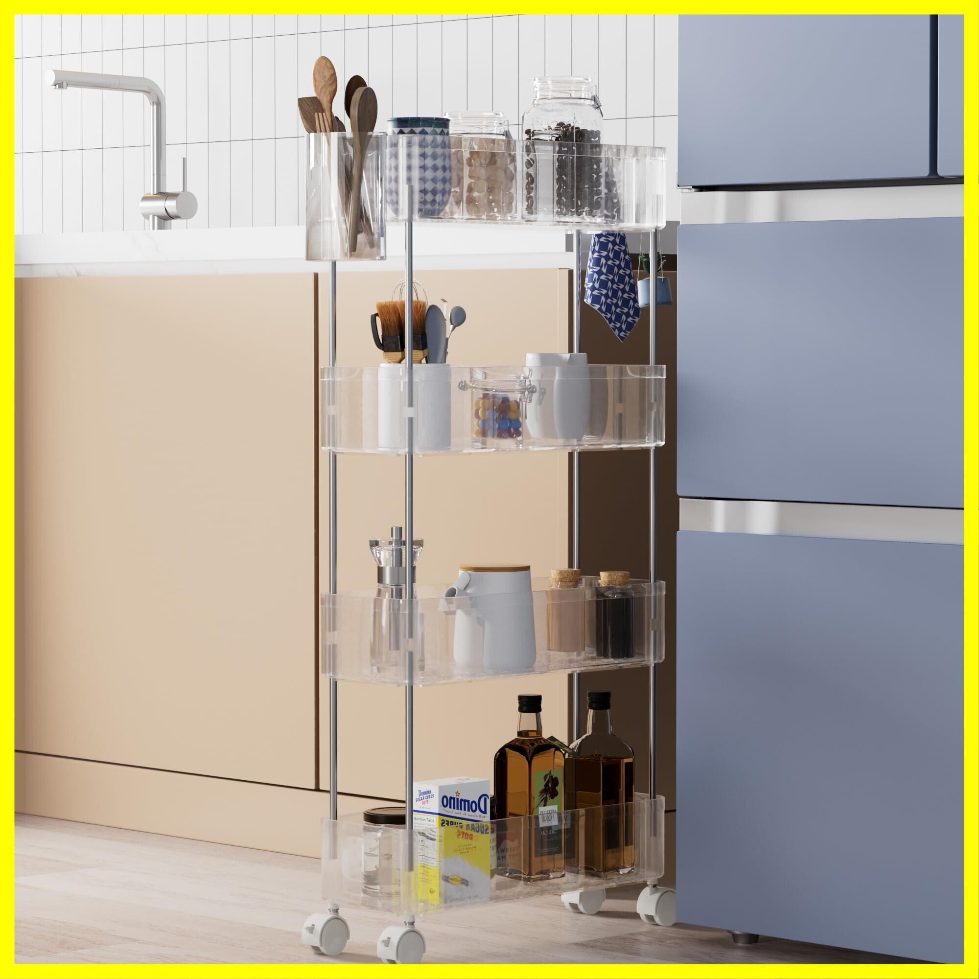 VECELO スリムワゴン 4段 キャスター付き 幅13.5×奥行37.5×高さ86.5cm 透明 収納ラック おしゃれ スリム収納 冷蔵庫横 多機能