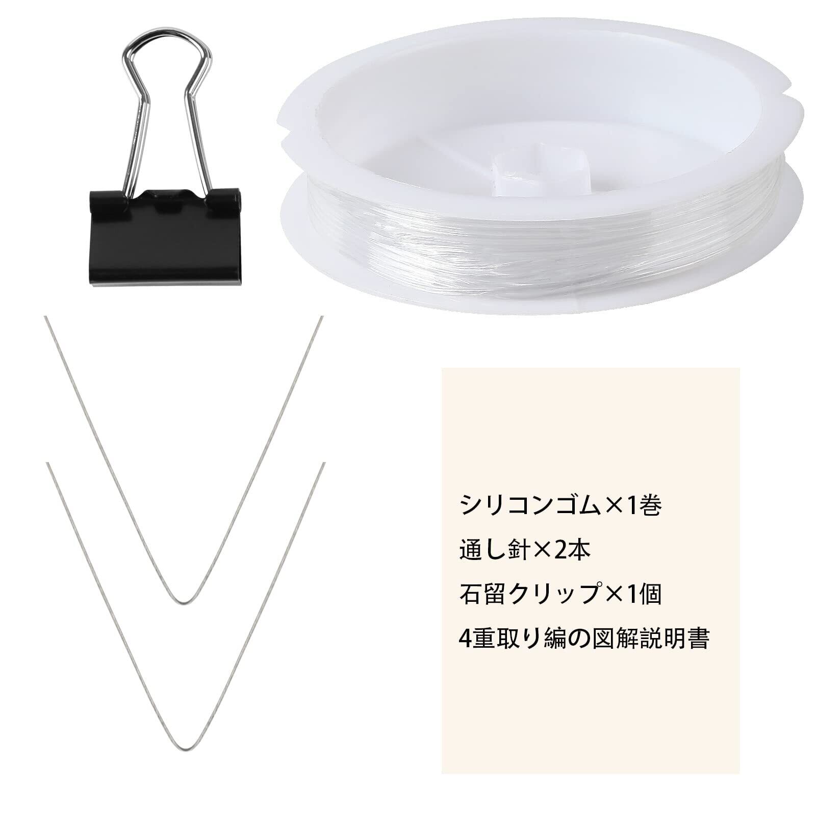 【セット内容】:約 0.8mm(約8M)水晶の線×1巻、通し針×2本、石留クリップ×1個、4重取り編の図解説明書 【色】:クリア