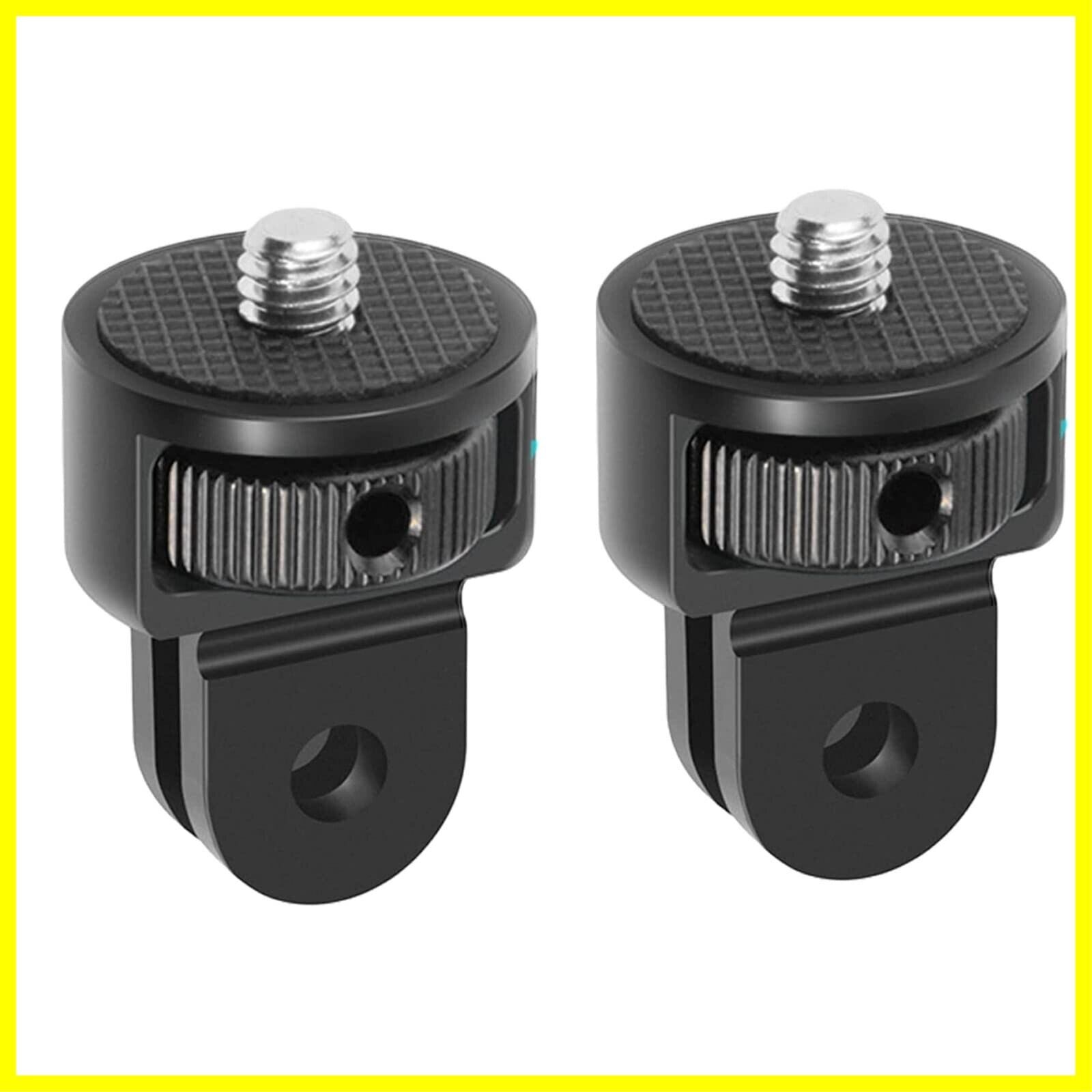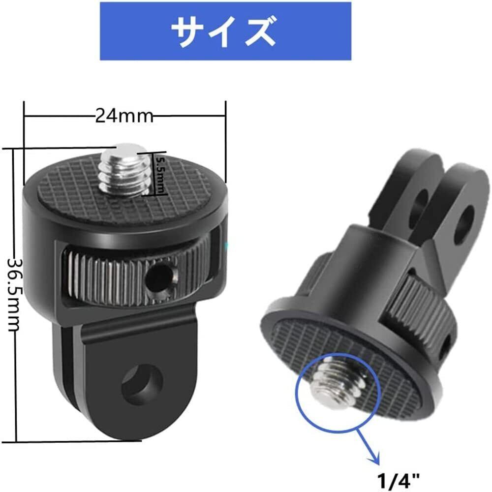 1/4 変換アダプター 2点セット アルミ変換アダプター 回転ネジ ミニ三脚マウント トライポッドアダプター GoPro用(GP規格) カメラネジ(1/4規格)に変換 (ブラック)
