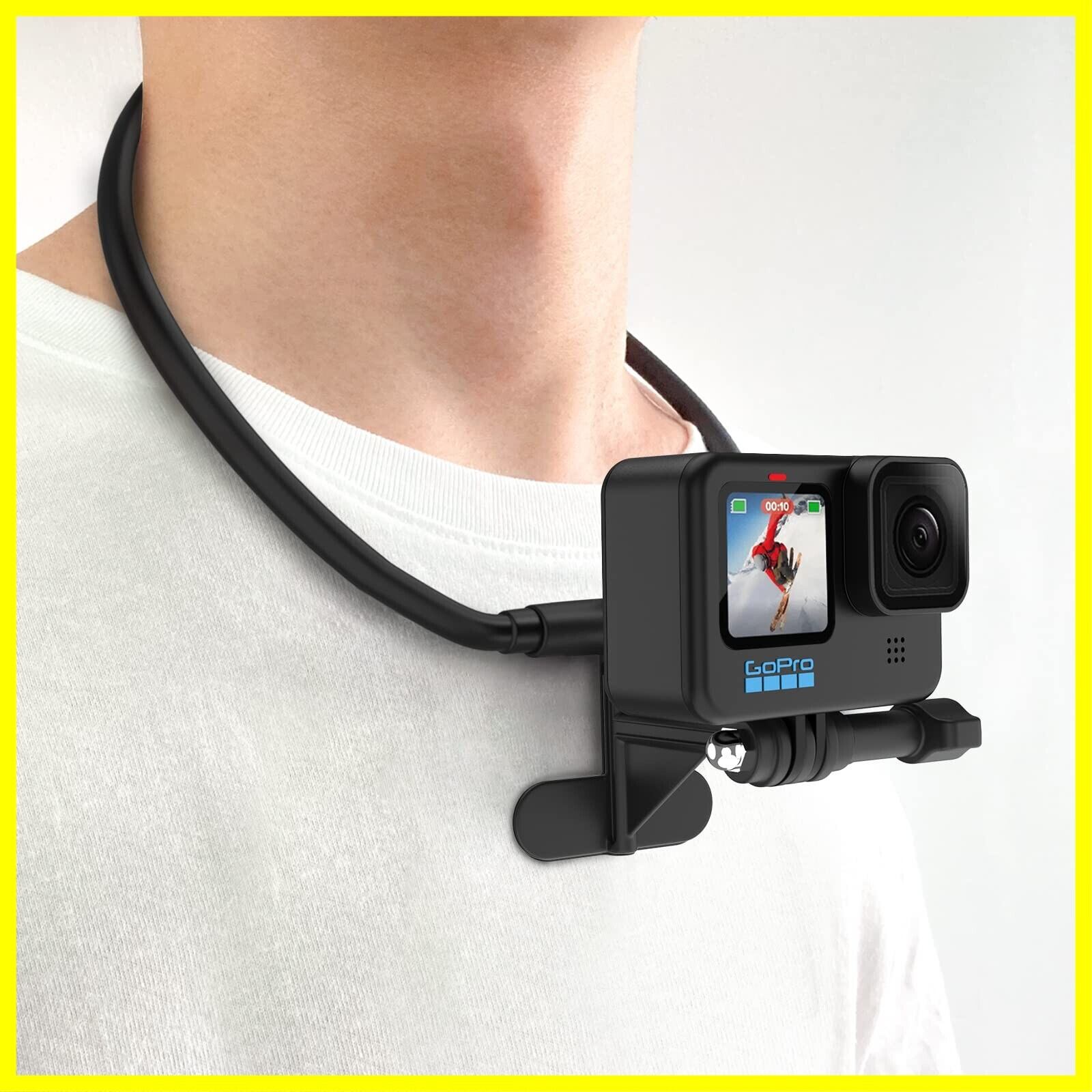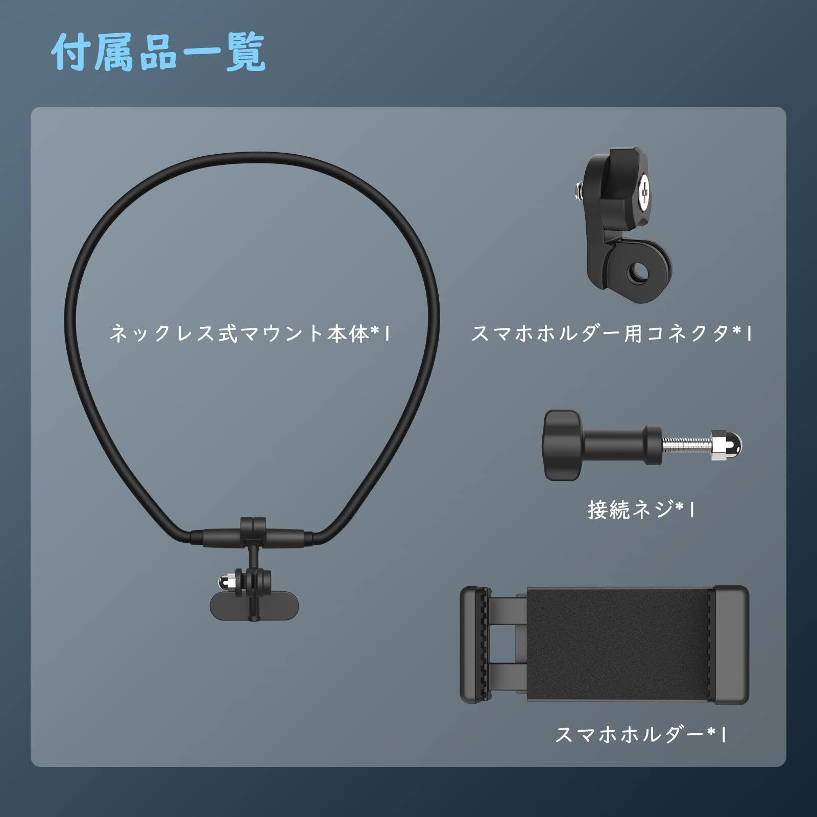 「ソフトで頑丈な素材」 首掛けの部分は柔軟で靭性があるシリコン素材を採用し、且つチューブ状のデザインで、首への負担を最小限に抑えられ、より快適に使用できます。マウントの部分は上質のABS素材及びハードなPC素材で作り上げ、しっかりとGoPro、スマホなどを固定し、安定した撮影体験を与えます。
