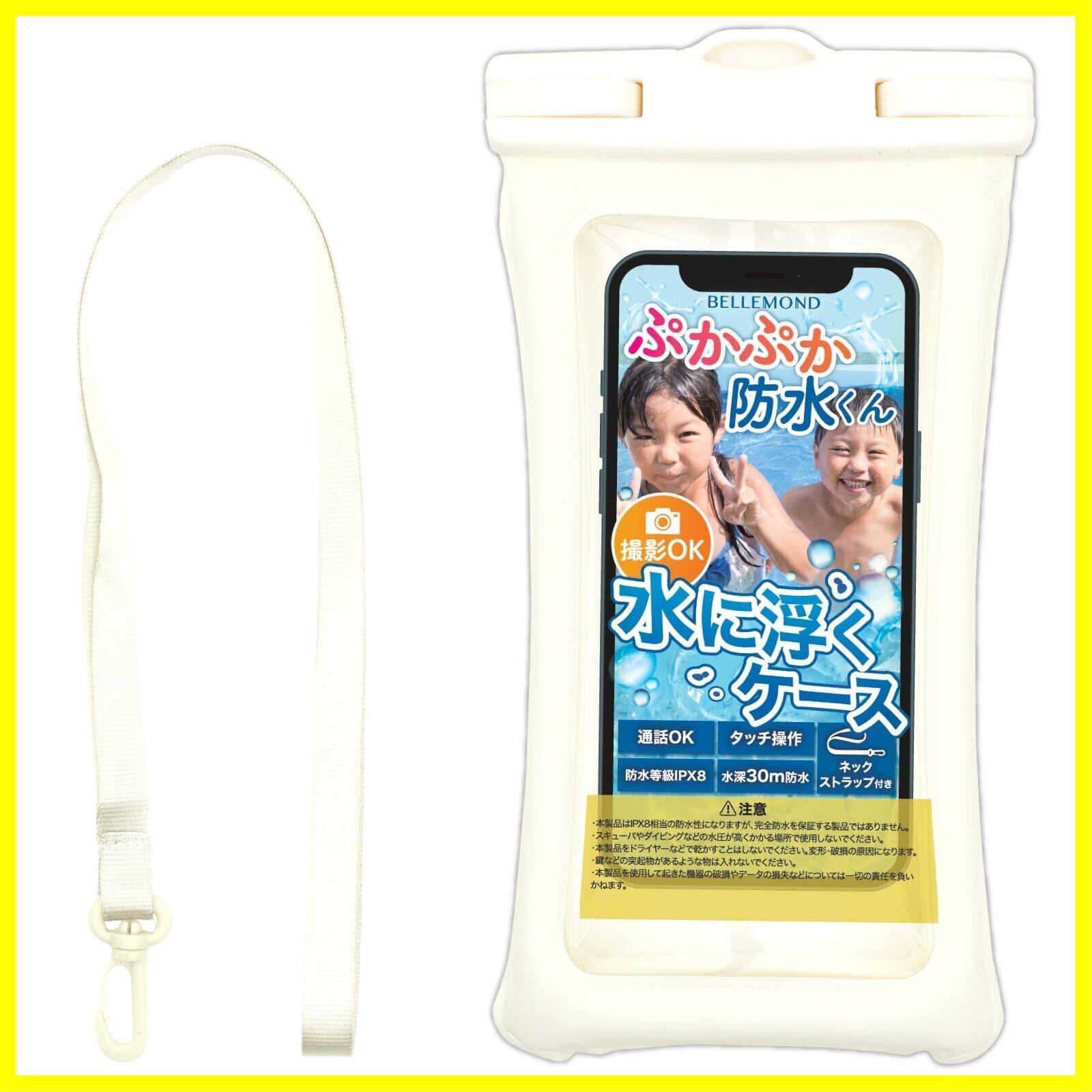 ベルモンド スマホ 防水ケース お風呂 【 IPX8 / 顔認証/水に浮く/水中撮影 】首かけ 海 プール 釣り 登山/iPhone 16 15 14 13 12 pro max 対応 防水 携帯電話 ぷかぷか防水くん #01 ピュアホワイト B0915