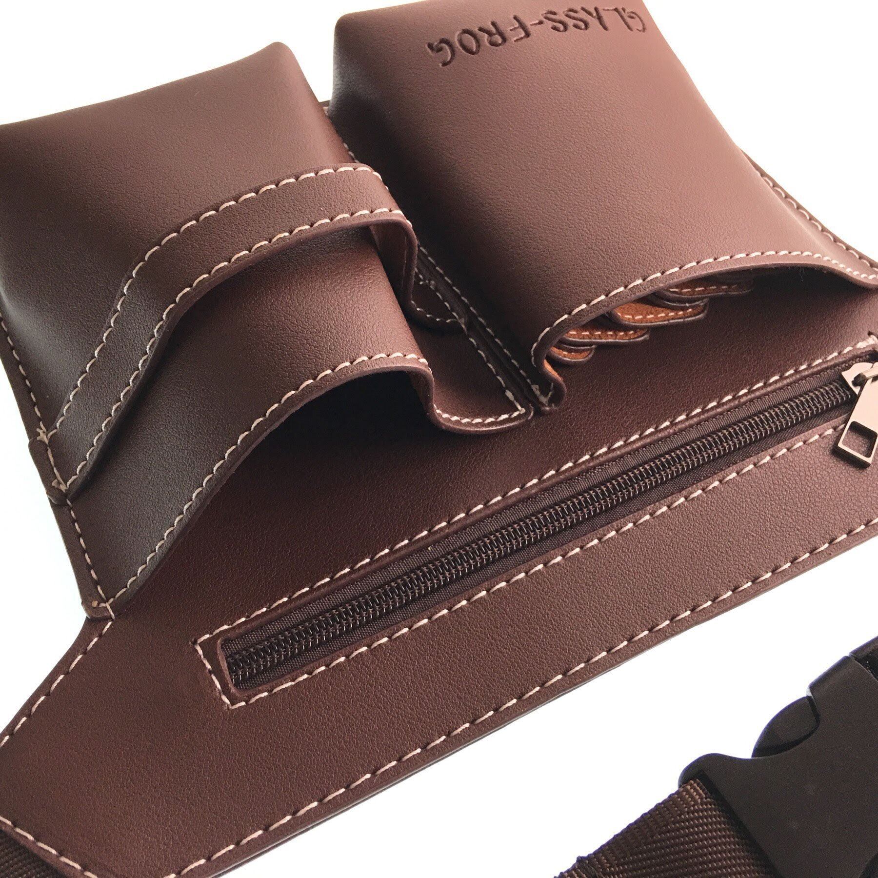 【GLASS FROG】シザーケース ウエストポーチ 5丁挿し 美容師 トリマー 園芸(ダークブラウン)