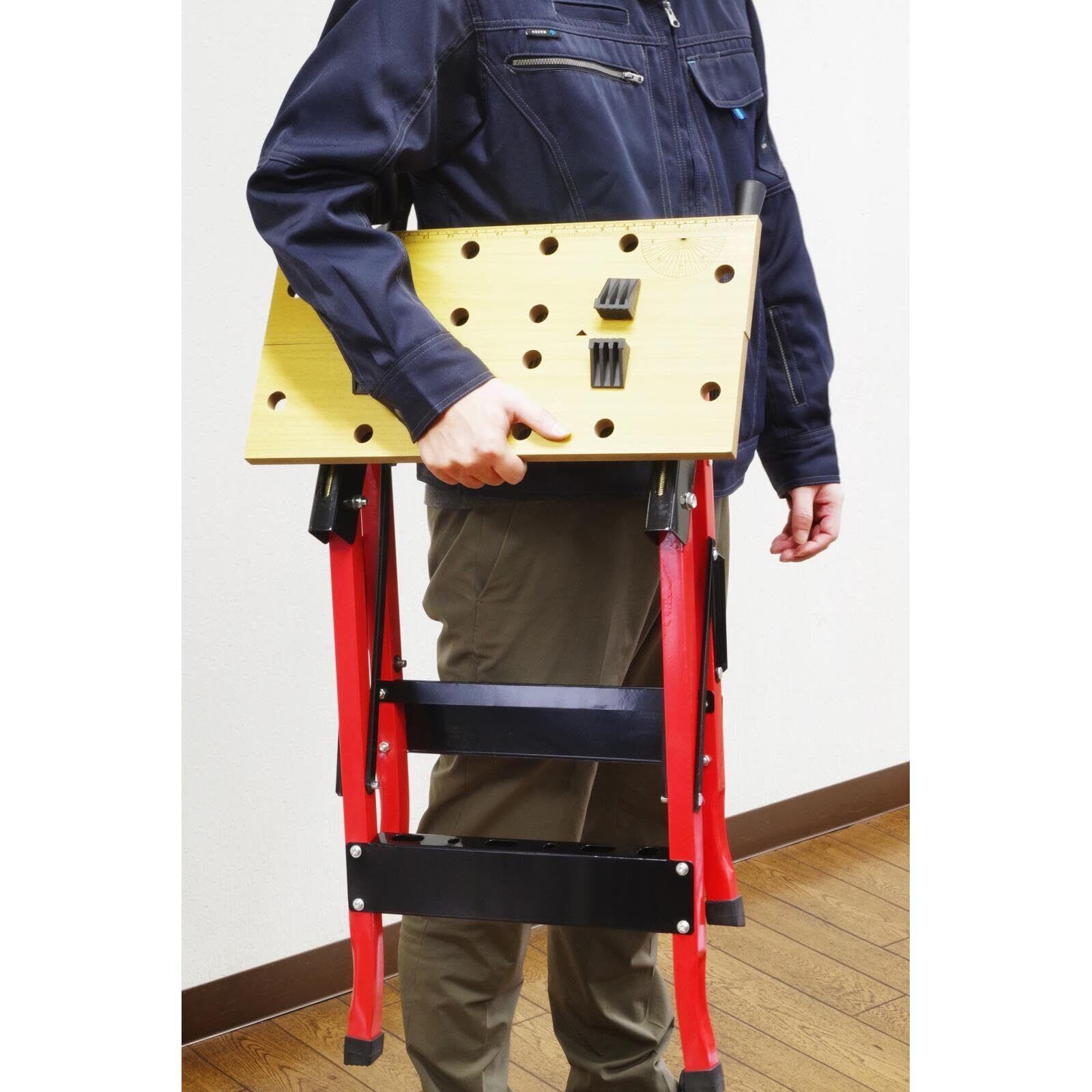 軽量、コンパクトで持ち運びに便利な折りたたみ式作業台です。