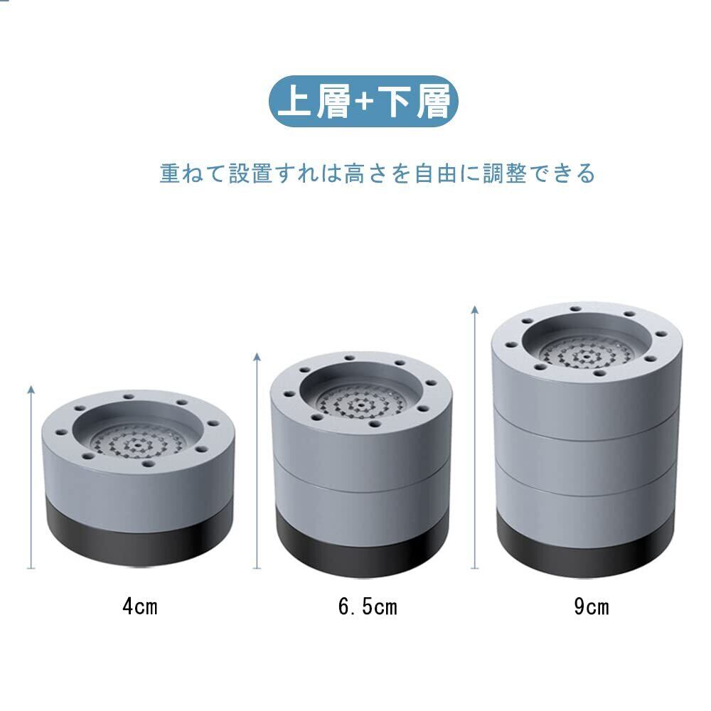 【商品特徴】取り付け作業は置くだけで実に簡単です。重ねて使用可能、耐摩擦、滑り止め、洗濯機からの振動の伝達を軽減します。