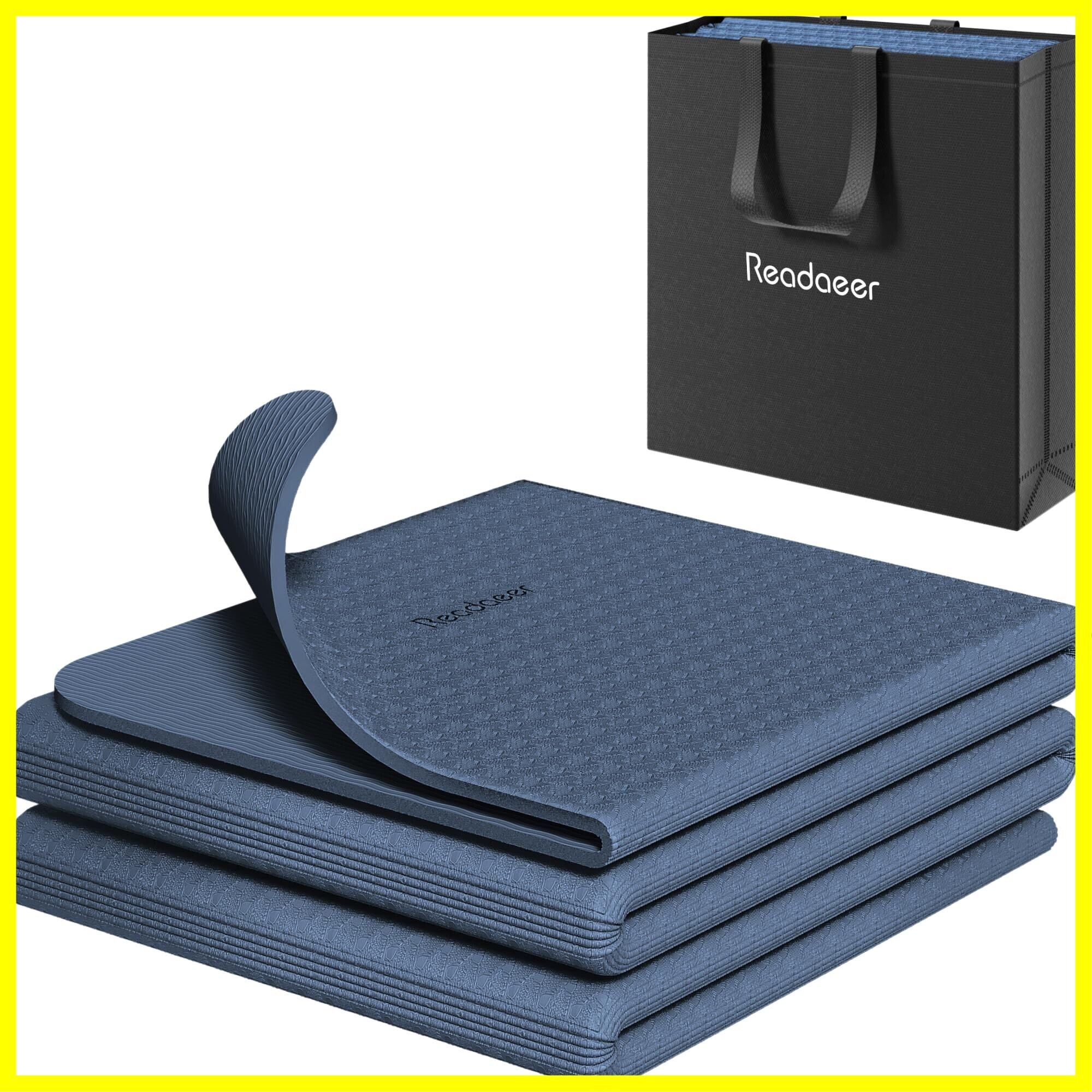 Readaeer ヨガマット トレーニングマット 折り畳み式 183cm×61cm 厚め 6mm TPE素材 無臭 防音 収納バッグ付き 軽量 持ち運び・収納便利 ストレッチマット エクササイズマット フィットネスマット ピラティスマット