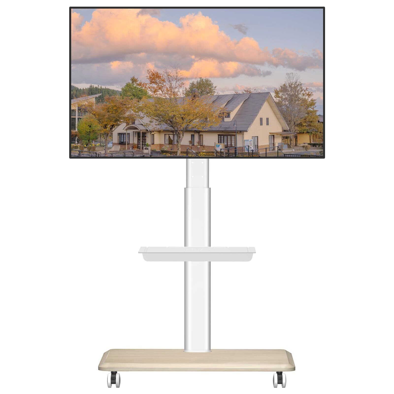 Rfiver テレビスタンド白 壁寄せテレビスタンド キャスター付き tvスタンド 27~65インチ対応 テレビ台 移動式 ラック回転 高さ調整可能 木製ベース 耐荷重40 kg VESA400x400まで 業務用 展示用 家用 ホワイト