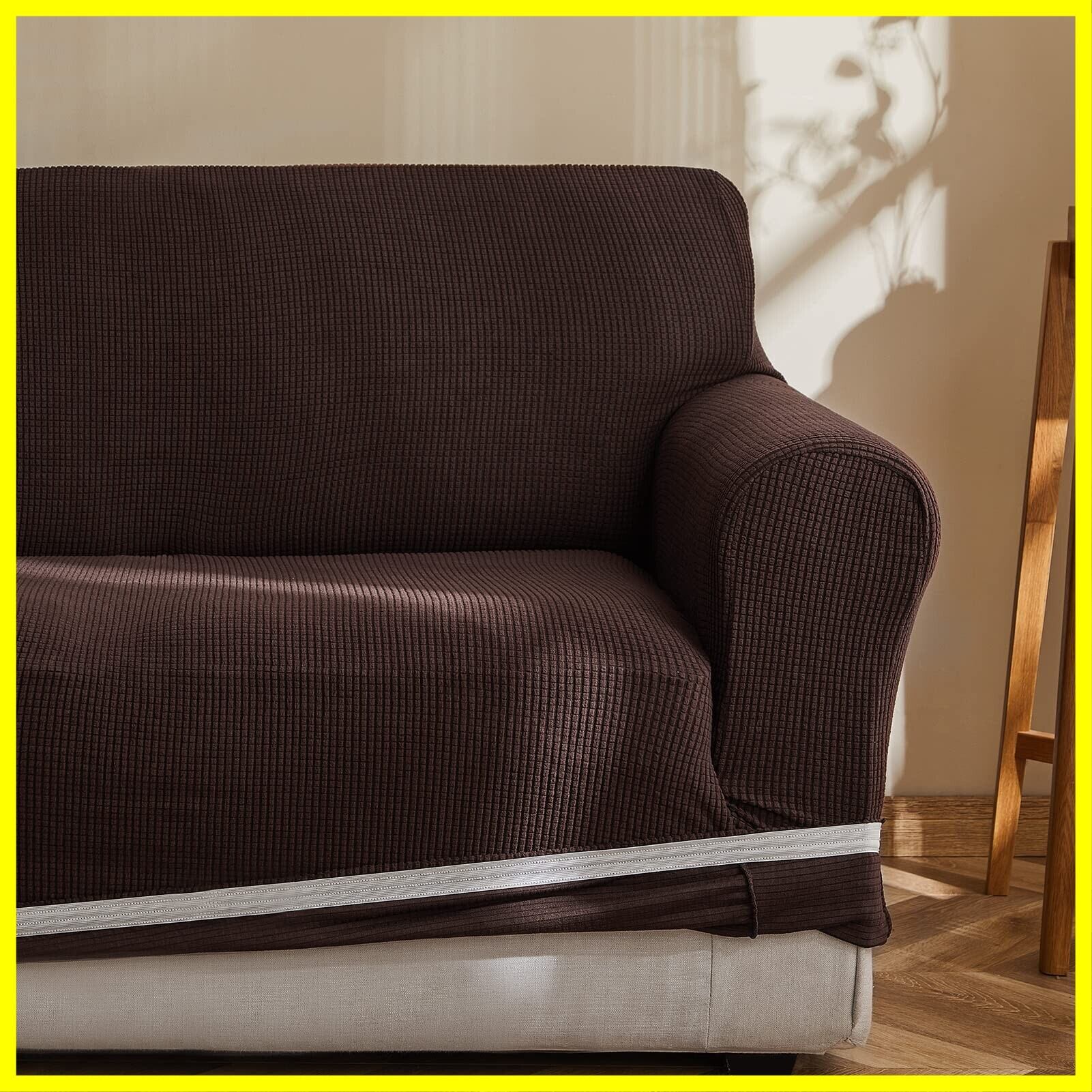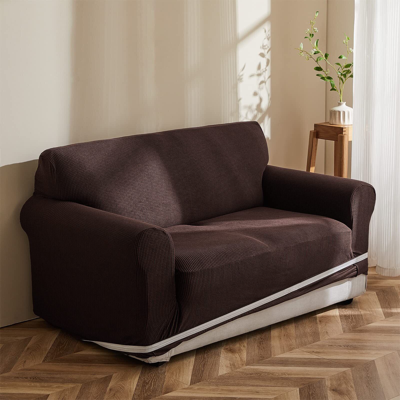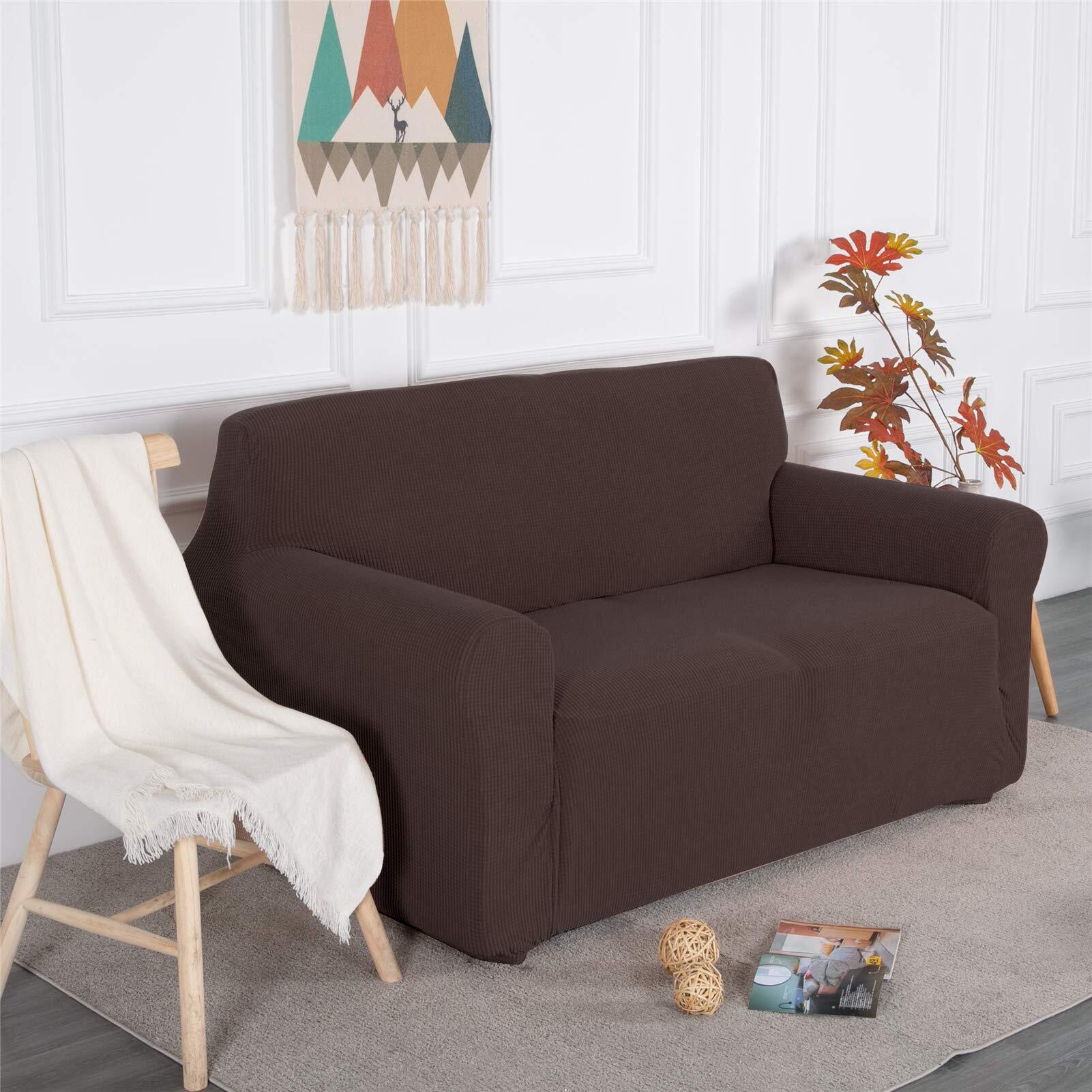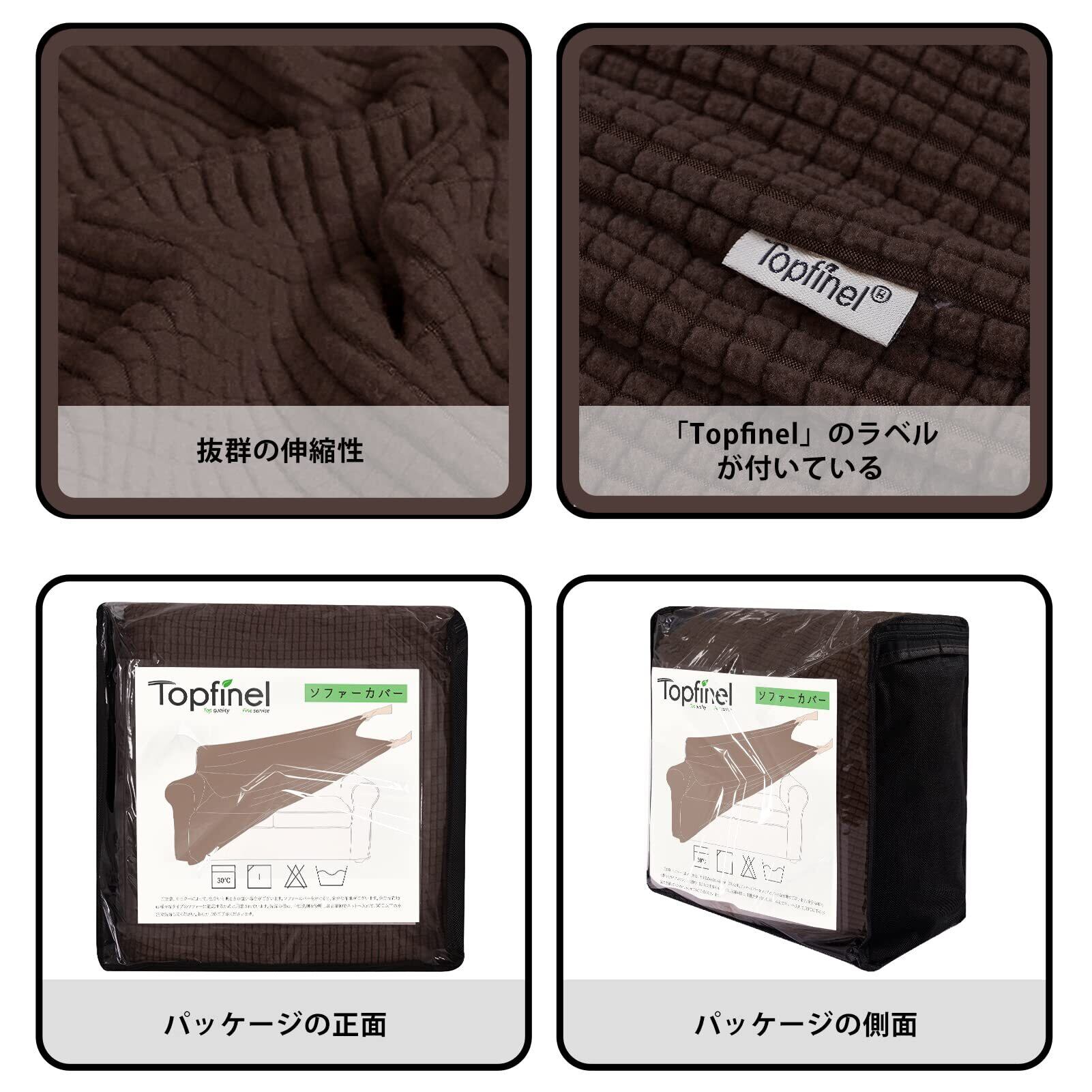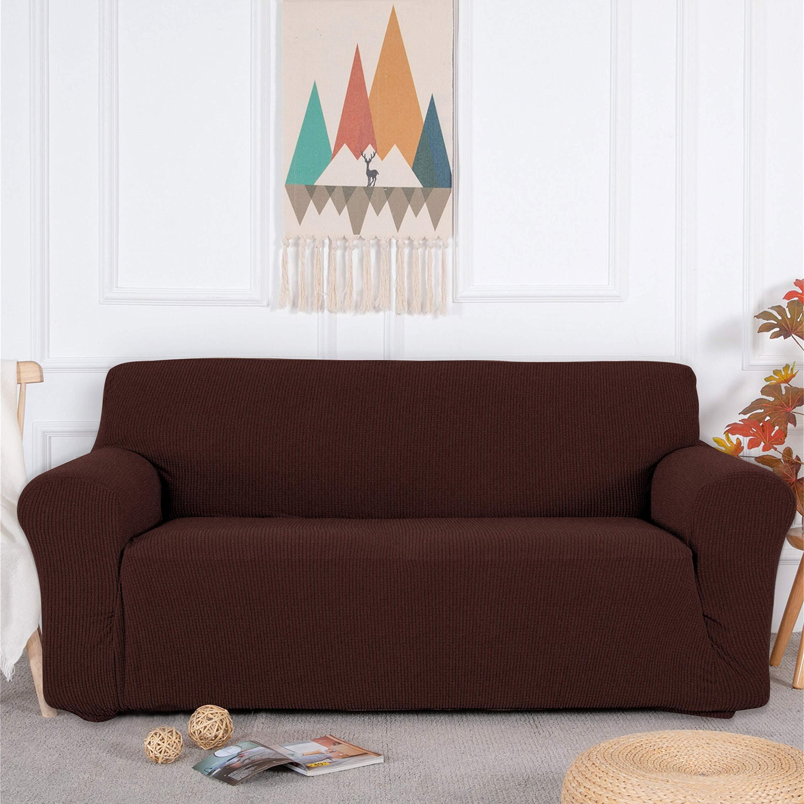 Topfinel ソファーカバー 3人掛け 肘付き 無地 北欧風 ストレッチ フィットタイプ 伸縮素材伸び良く 滑り止め 柔らかい 犬 猫 傷 防止 超便利 四季適用 (チョコレート)