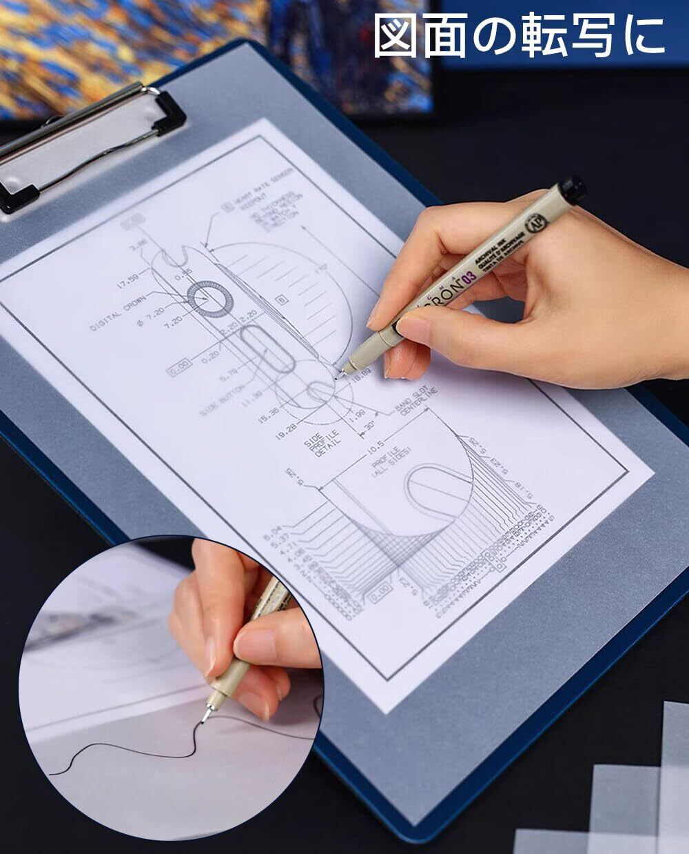 漫画やイラスト、写し絵、図面、書道、刺繍などの転写に活躍します。そのほか、DIYやラッピング包装などにも使用可能です。