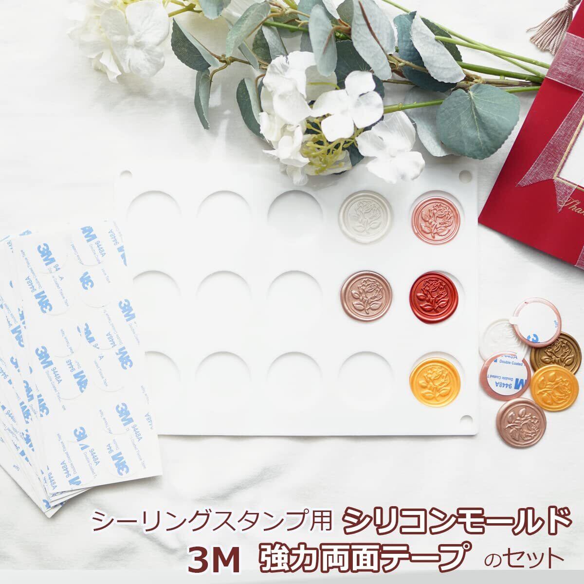 シーリングワックス スタンプ台+両面テープ 100枚セット 3M シール モールド パッド (シリコンモールドパット+両面テープ100枚)