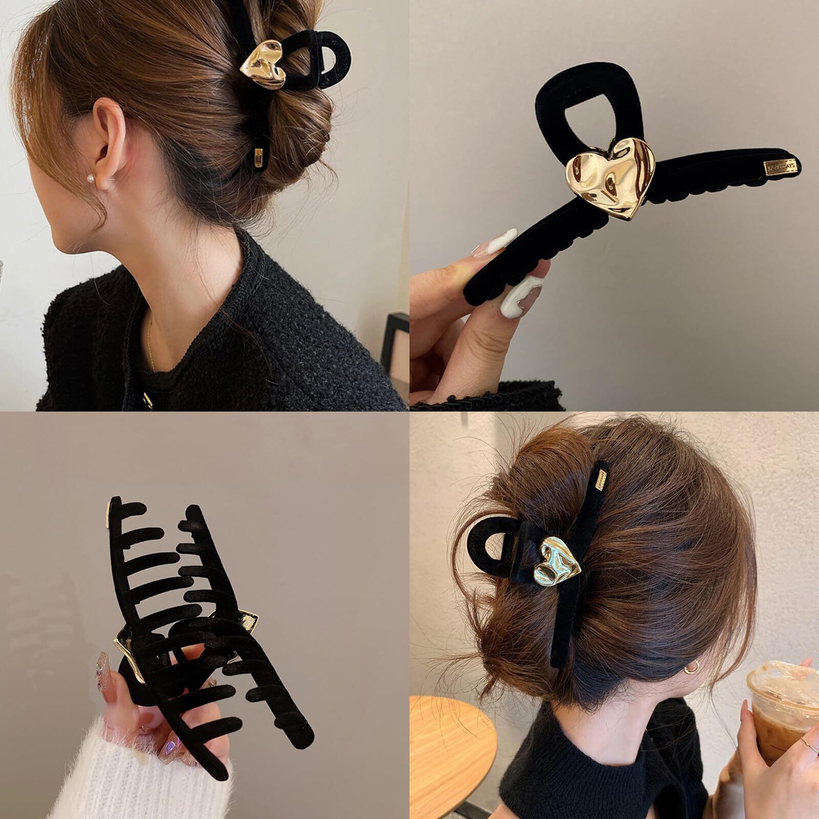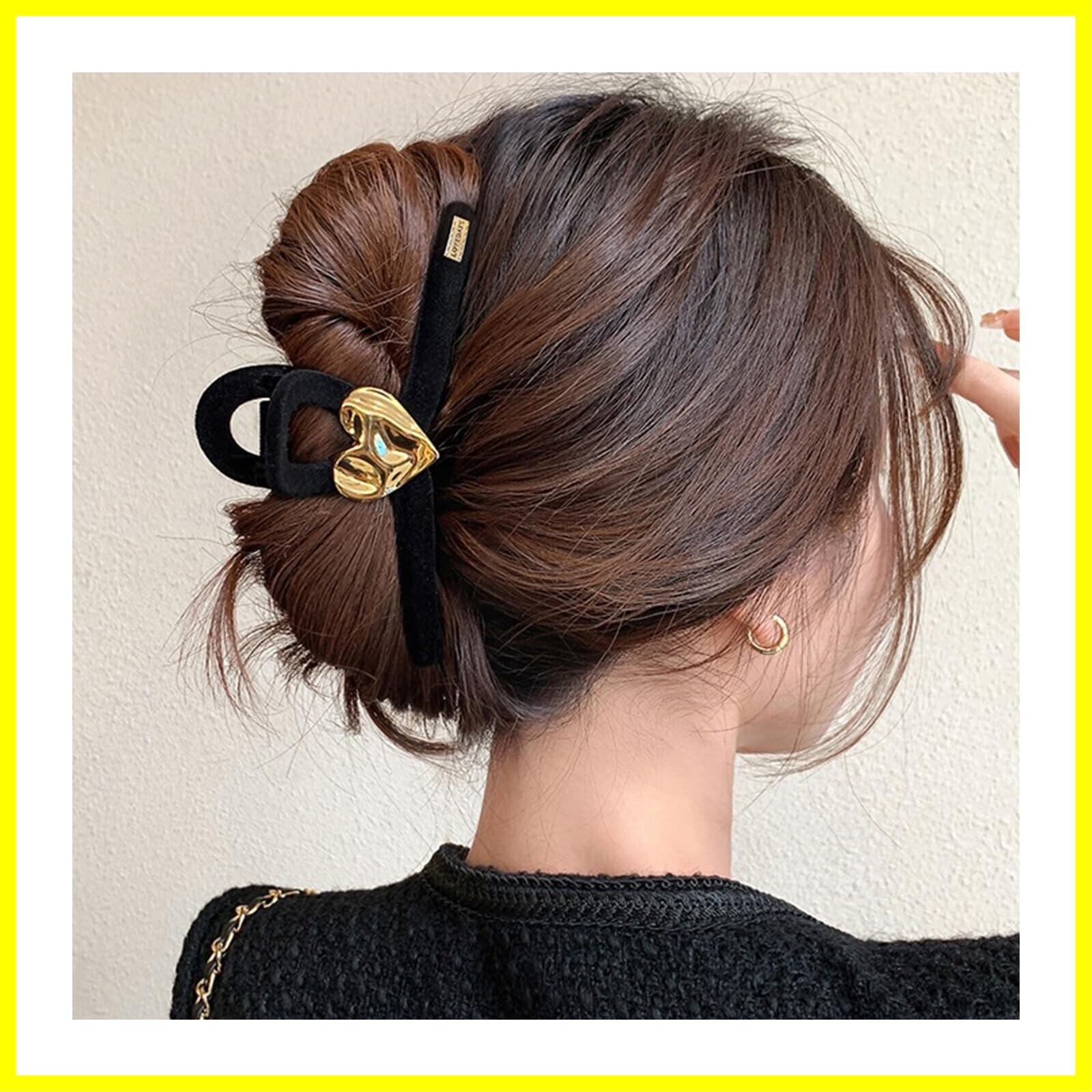 happykau ヘアクリップ 大きめし 髪留め バンスクリップ 大きめ 髪留め クリップ しっかり ヘアアクセサリー 大人 韓国 可愛い おしゃれ 贈り物 (ブラック)