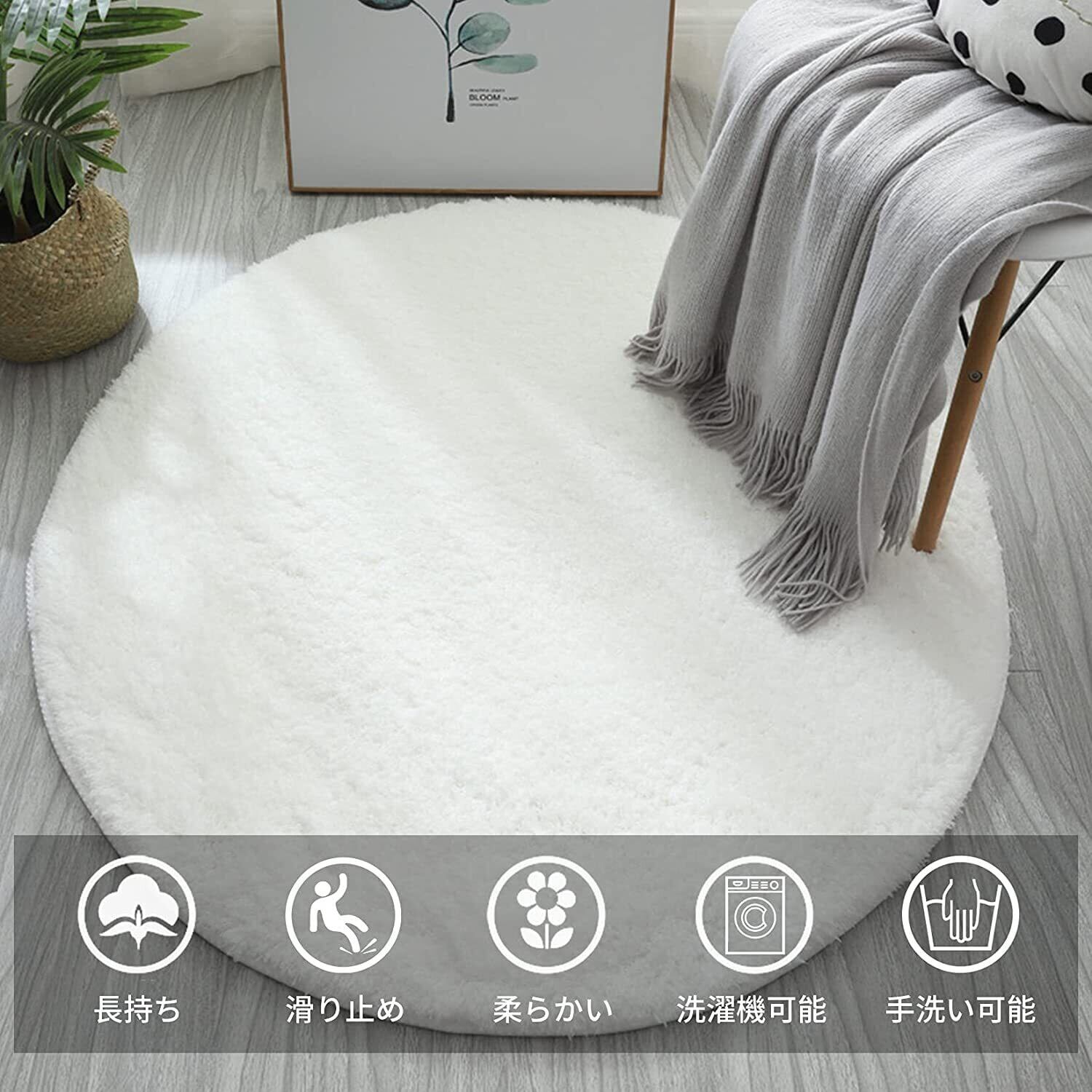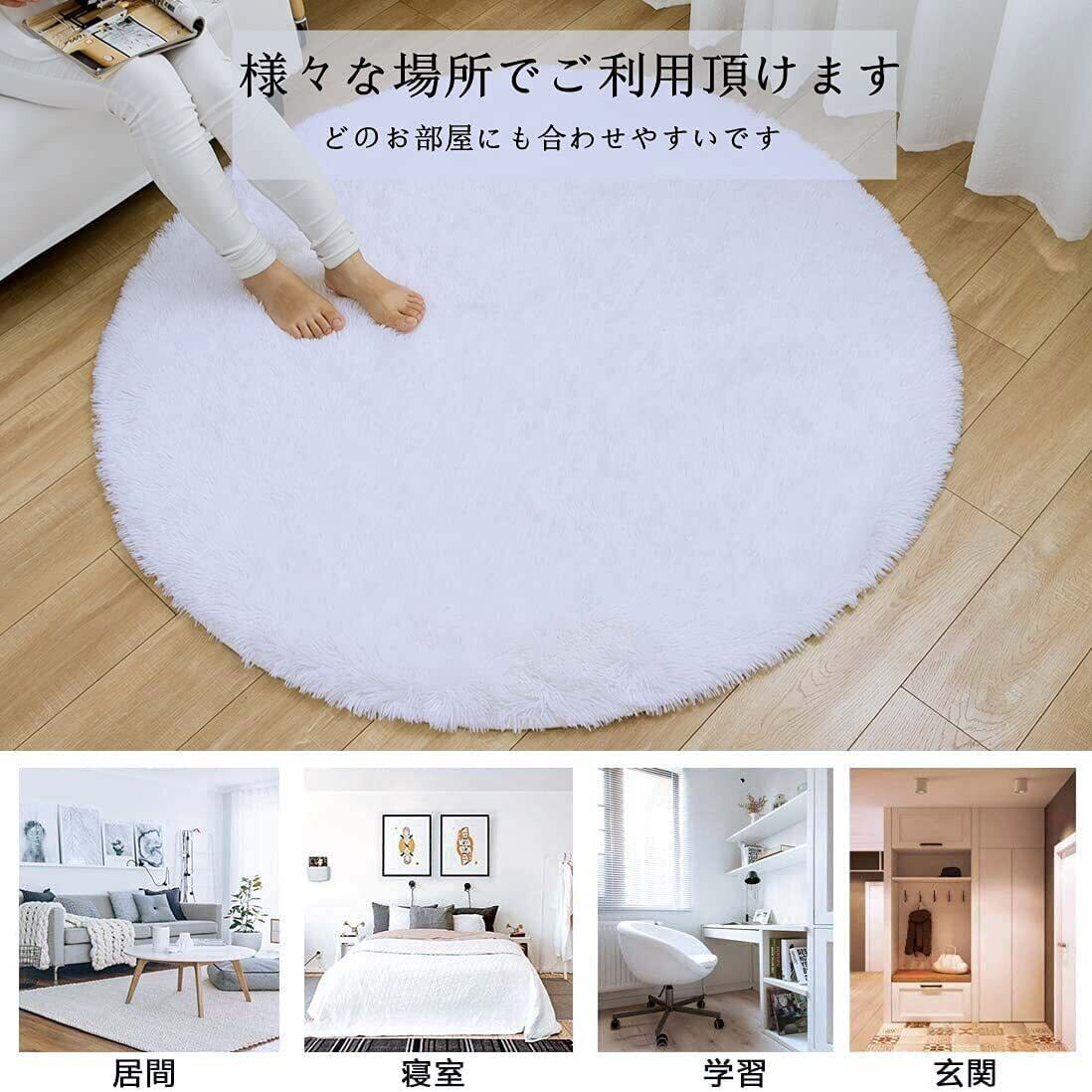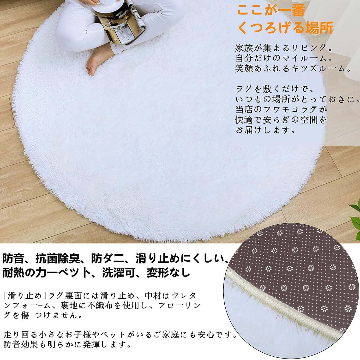 Leesentec カーペット 円形 シャギー ラグ 丸 洗える ラグマット 滑り止め付 抗菌 絨毯 ふわっと手触り 優しいフランネル 北欧 ラグ 防臭 防ダニ オールシーズン 床暖房対応 (直径160cm, 白い)