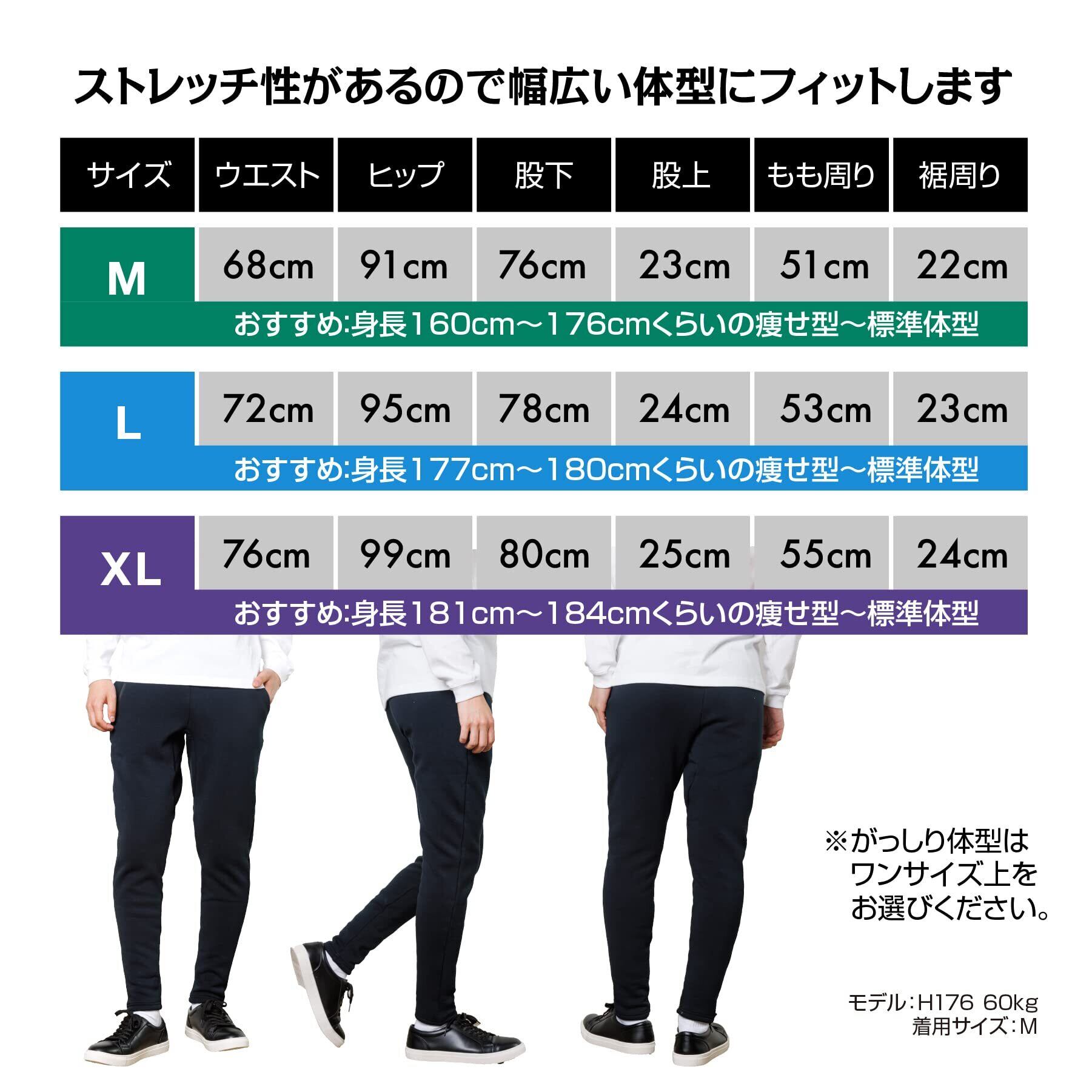 裏起毛で暖かいスリムタイプのメンズジョガーパンツ。ストレッチ性に優れ、裾にリブがないので足長効果を発揮します。ルームウェアはもちろん、フィットネス、カジュアルな私服にピッタリのアイテムです。