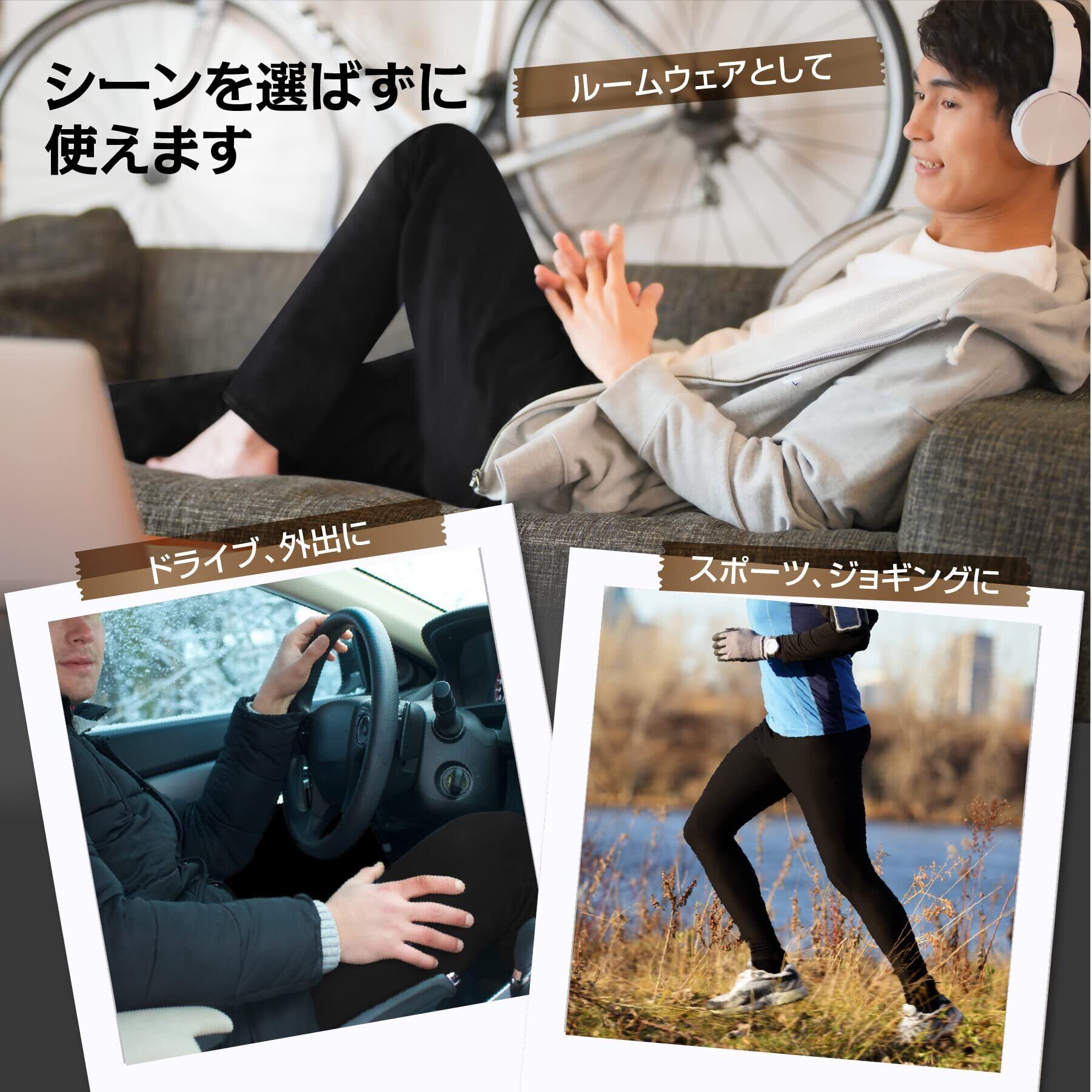 裏起毛で保温性が高く、寒い季節に重宝するメンズジョガーパンツです。厚みがありながらもスリムなシルエットを保持しています。スマホ用サイドポケットが便利でストレッチ性に優れ、裾にリブがないので足長効果を発揮します。ルームウェアはもちろん、フィットネス、カジュアルな私服にピッタリのアイテムです。スマホ専用ポケットは斜めにカットされており、自転車に乗っていても落ちにくい設計。サイドにあるのでフィットネス中にも邪魔になりません。 ジップポケットもあり、小銭や自転車の鍵など、小物入れに重宝します。