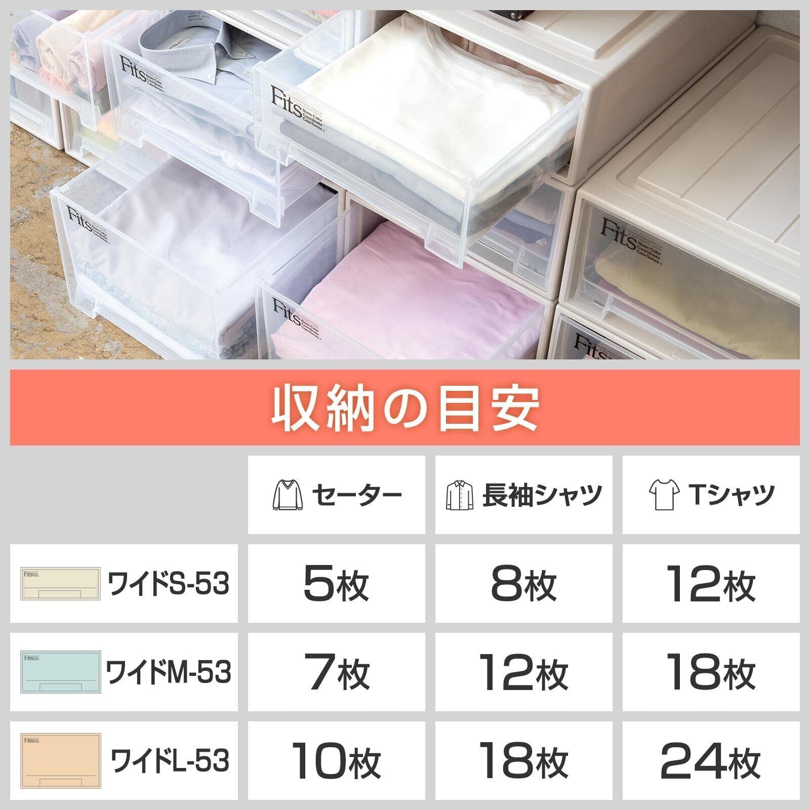 収納の目安(約):Yシャツが10枚