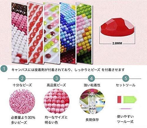 全面フルダイヤモンドビーズ 立体感の強い5D効果のダイヤモンドビーズ樹脂ラインストーンで貼り付け製作するキットです。DIYの絵画、創意工夫、ダイヤモンドビーズ樹脂で絵を描けます、独自の光沢で輝き、現在最も人気のあるDIYの絵画で鮮やかなダイヤモンドペインティングです。 ダイヤモンドビーズを使って自分で一から作り上げる一味違う絵画で達成感も抜群です。 リビングルームや寝室のインテリア、店舗、会社等の事務所などの装飾にも最適です。 刺繍よりも簡単に製作出来るので、お子様や手芸初心者様にもオススメです。