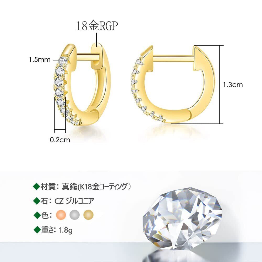 【材質】真鍮(K18金コーティング)、 ジルコニアCZ。【サイズ】高約13mm。【重さ】約1.8g。【セット内容】両耳: 2個セット。