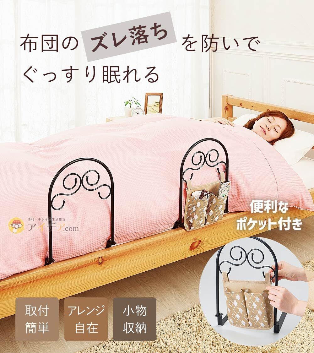 コジット 2個セット 布団のズレ落ちに 取り付け簡単 マットの下に差し込むだけ 収納ポケット付き かんたんベッドガード ロマネスク