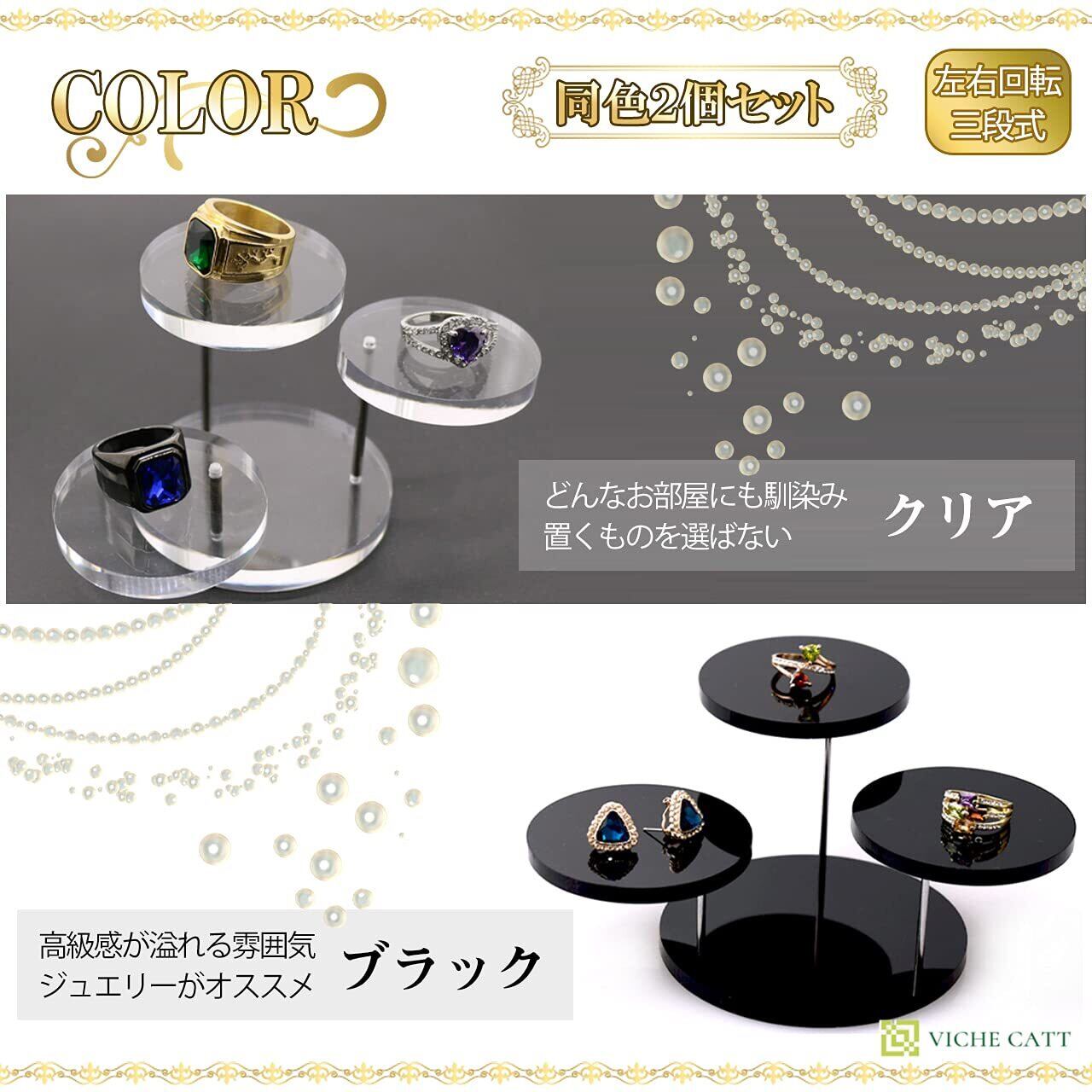 VICHE CATT アクセサリースタンド ピアススタンド ジュエリースタンド アクセサリー ディスプレイ スタンド アクリル製 3段 2個セット (クリア)