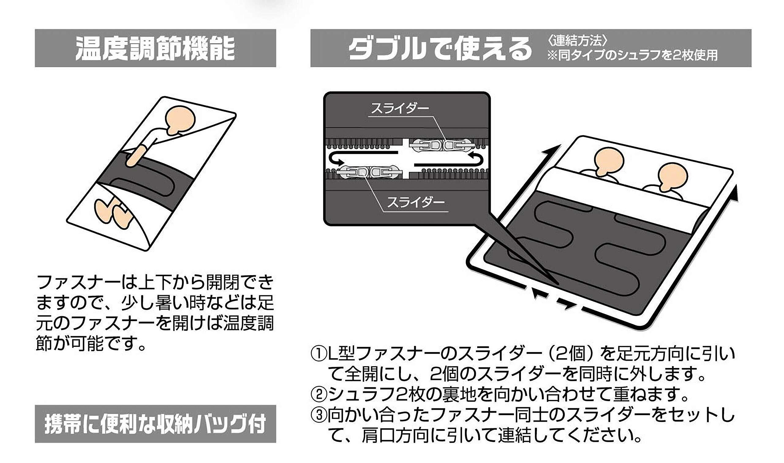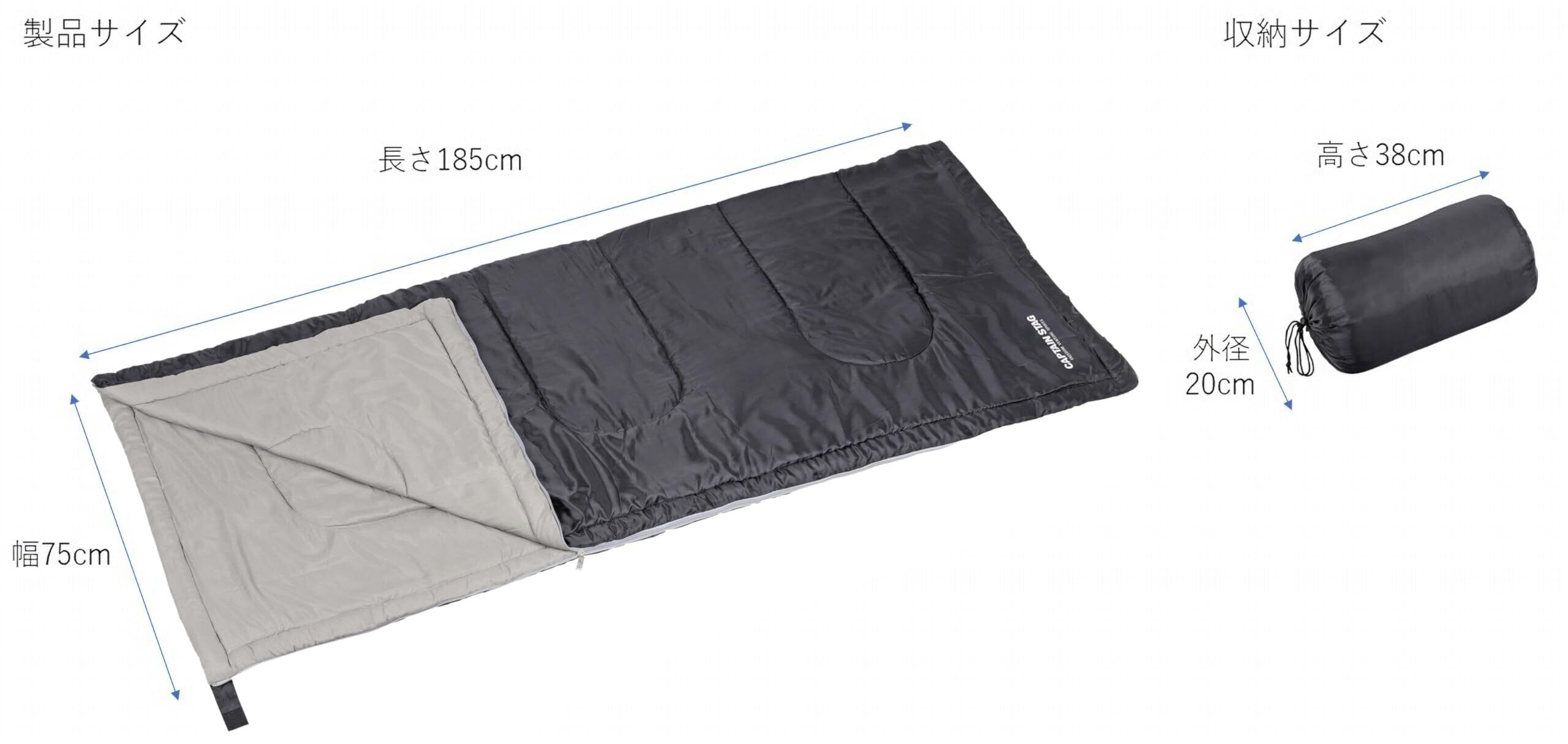 材質:表地/ポリエステル100%、裏地/ポリエステル100%(マイクロファイバー)、中綿/ポリエステル(ホローファイバー)600g、収納バッグ/ポリエステル、原産国:中国