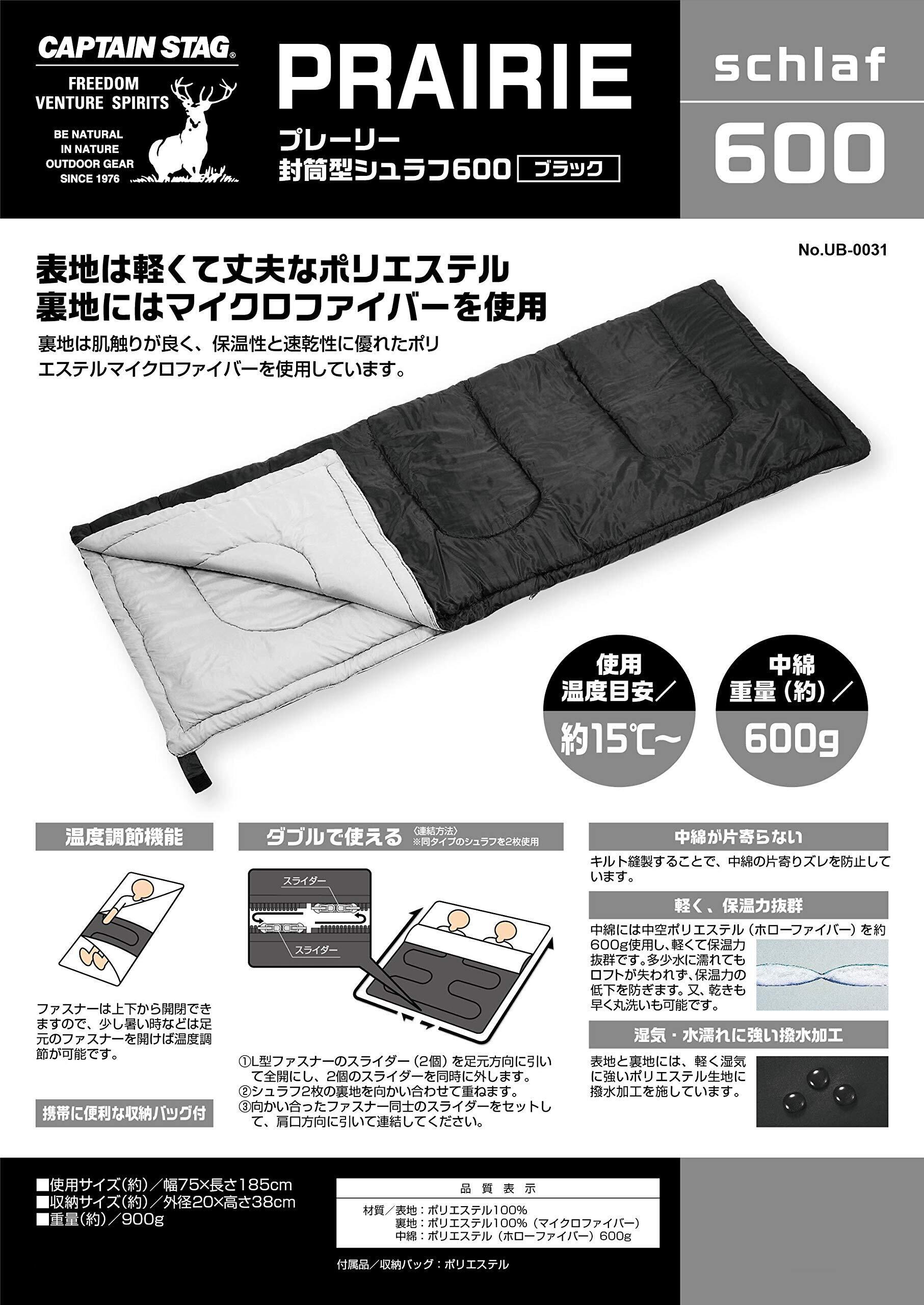 キャプテンスタッグ(CAPTAIN STAG) 寝袋 シュラフ 【最低使用温度15度】 封筒型シュラフ プレーリー 中綿量600g