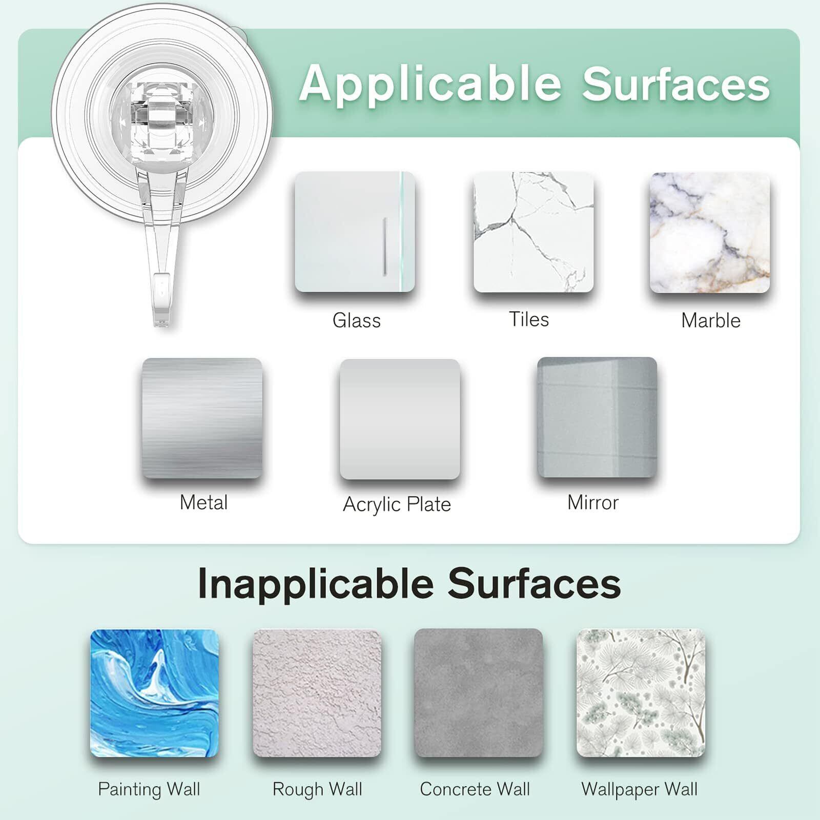 【ご注意】使用上のヒントと注意: このアイテムは、研磨されたセラミックタイル、鏡、ガラス窓、光沢仕上げのステンレススティール壁やプラスチックボードなどの非多孔質で滑らかな表面のみに使用できるフック2個パックです。粗いコーティング面、研磨されていない大理石、木製ドア、でこぼこな磁器表面などといった、多孔質な凸凹で粗いテクスチャー表面にはお使いいただけません。