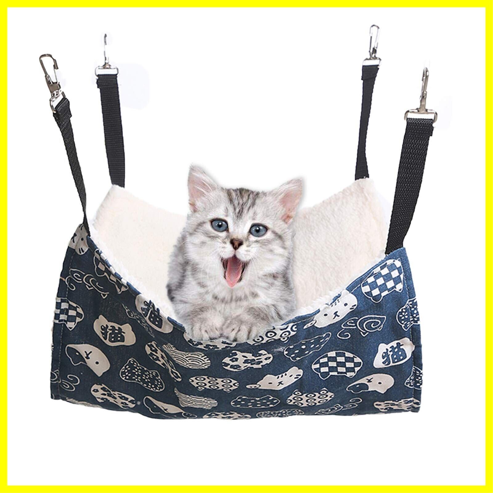 YFFSFDC猫 ハンモックはんもっくキャット 椅子 ケージ用 大きい 耐荷重10KG サイズ調整可能 58cm x 48cm ペット 遊び場 通気性 金具丈夫 冬夏両用(和風猫ブルー)