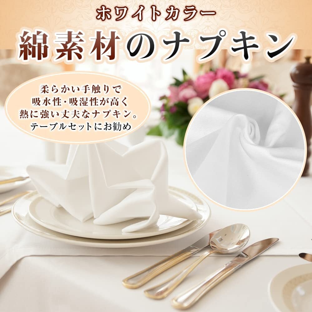 【セット内容】テーブルナプキン×10枚 【サイズ(約)】50cm×50cm 【素材】コットン100% 【カラー】ホワイト