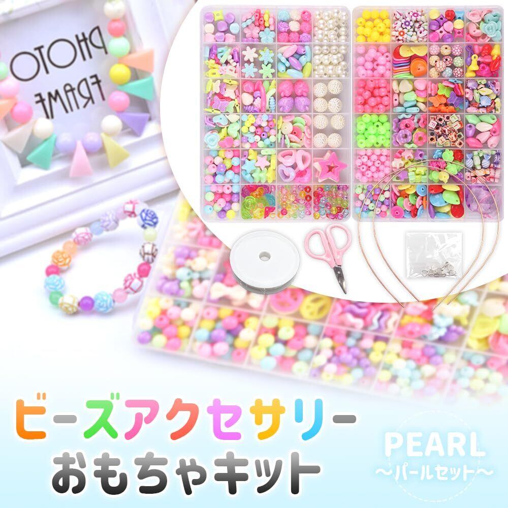 ZAIDEA ビーズ アクセサリー キット 工具セット 女の子 子供 大容量 ブレスレット カラフル 手作り カチューシャ付き パール