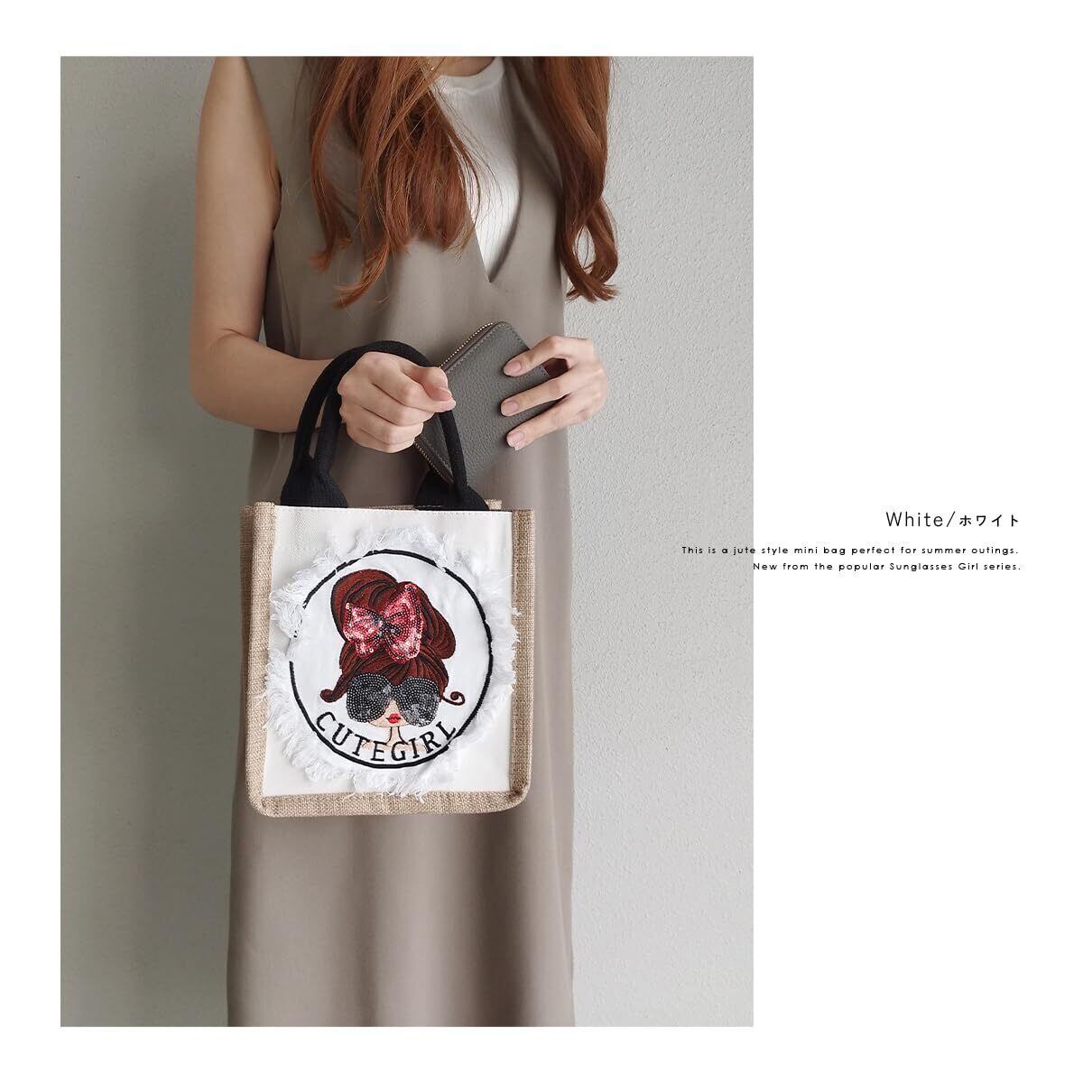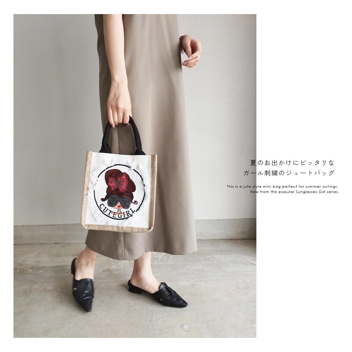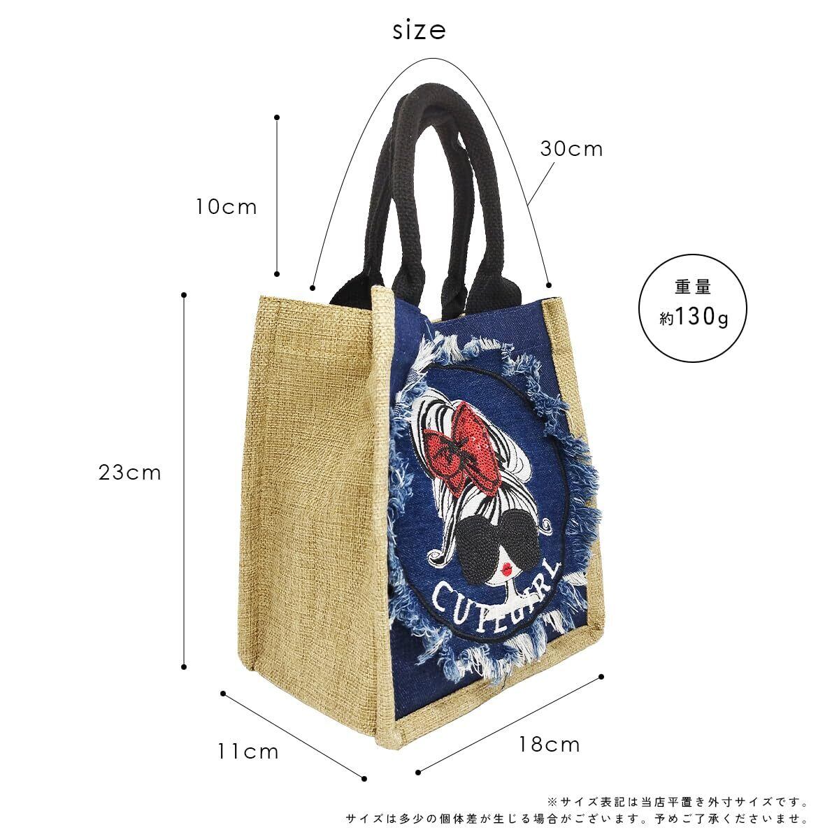 人気のリボンガールのジュートバッグ。持ってるだけで目を惹く「大人かわいい」バッグです。デイリーのショッピングやちょっとしたお出掛けにも◎ 夏のお出かけやレジャーにも使えるガール刺繍のジュートバッグです。見た目以上の収納力で、マチがしっかりあるので、500mlのペットボトルもすっぽり入りランチバッグにもぴったり。 水筒や折り畳み傘や日傘も入るので普段使いだけじゃなく、海やプールなどのレジャーにも使えるおすすめのアイテムです!