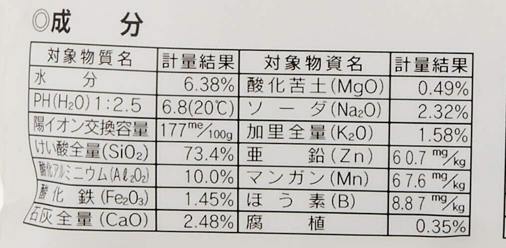 厳選した鹿児島産ゼオライトを100%利用した根圏環境活力天然鉱物資材です。イモ類(じゃがいも、里芋、さつまいも、ショウガ、ウコンなど)、豆類、球根や全種子類の発芽活着を促進します。周辺土壌改良と、活力化への速効性も期待できます。