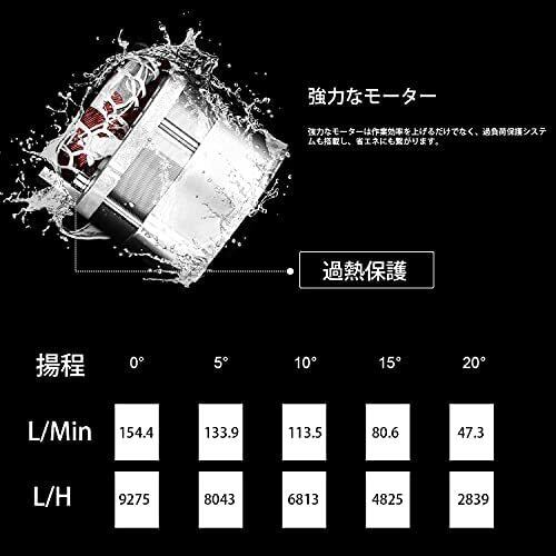 【オートオフ機能搭載】電動ポンプの安全性と耐久性を高めるため、DEKO家庭用排水ポンプは過熱保護措置を搭載し、モーターが過熱したときに、電源が自動的に切ります。とても使いやすい水槽ポンプです。また、排水スピードと流体の粘度に応じてポンプインペラブレードが自動的に調整でき、排水・給水作業をもっと楽に行えます。